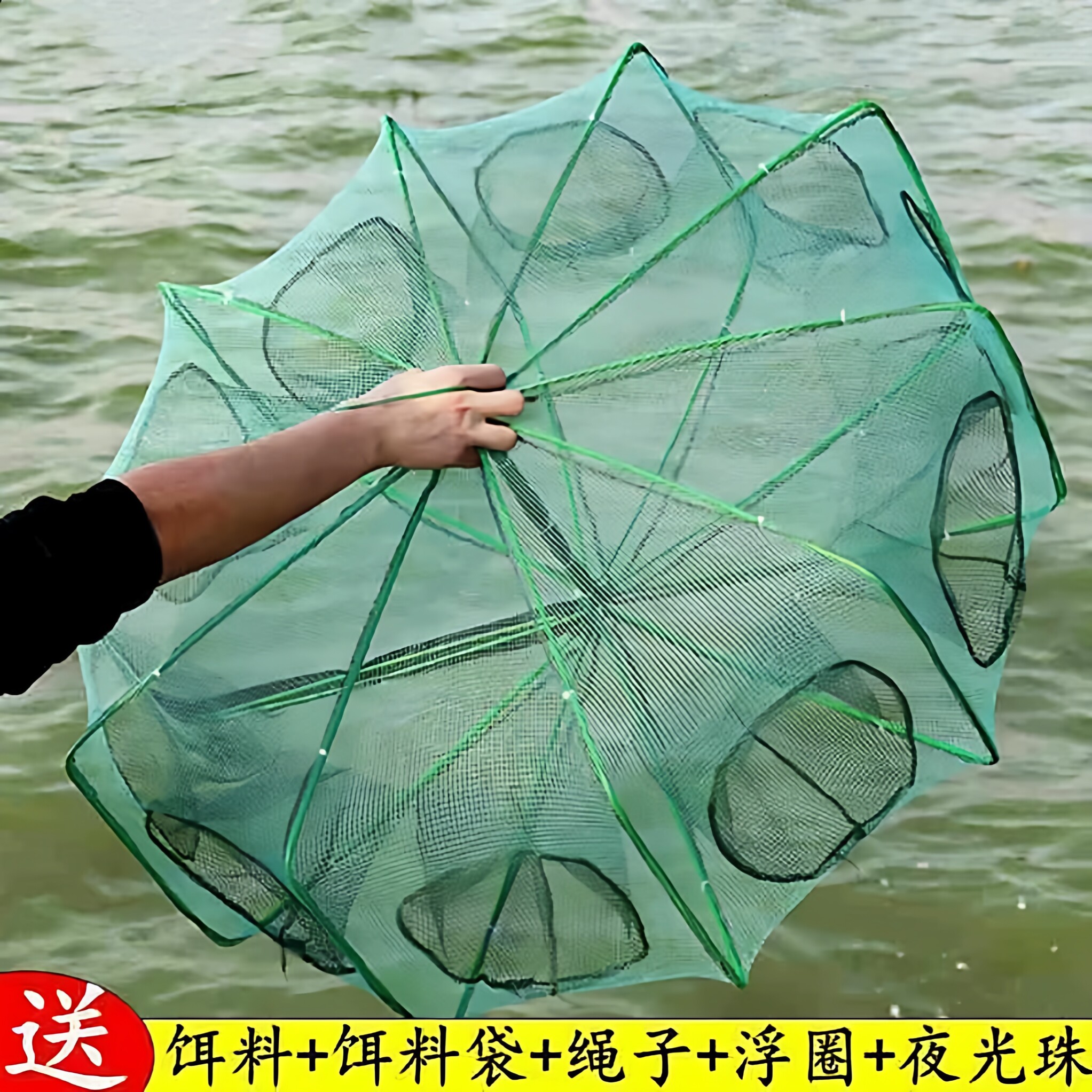 虾笼捕鱼笼加粗伞网自动渔网捕鱼网鳝鱼笼捉虾网诱鱼网带夜光折叠