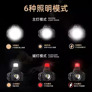 沃尔森夜钓头灯超长续航钓鱼专用感应帽夹灯强光超亮充电头戴夹帽