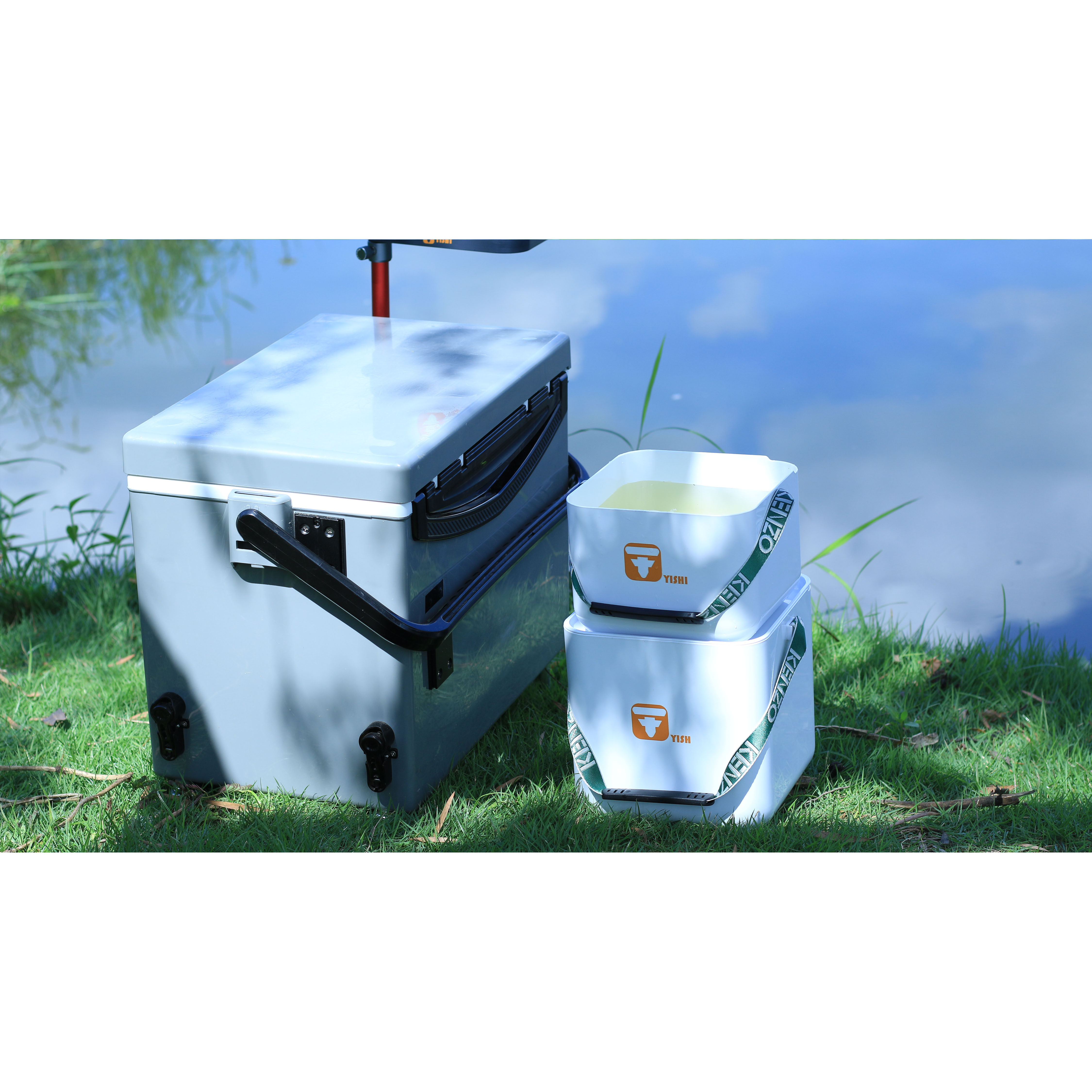 2025新款多功能钓鱼桶集打水、储物、拉饵、坐凳于一体,专为现代钓友设计。采用高强度环保PP材质,轻便耐用,抗摔防腐蚀。桶身内置可拆卸便捷拉饵盘,磁吸固定,操作顺手;桶盖巧妙设计为防滑坐垫,舒适承托。侧边设有挂钩和工具槽,方便收纳鱼线、剪刀等小物件。大容量桶体可储存活饵、渔获或冰块,密封性好,保冷保鲜。折叠提手设计,携带轻松,适用于台钓、路亚、野钓等多种场景。一桶多用,高效实用,是2025年钓鱼爱好者不可或缺的户外装备新选择。