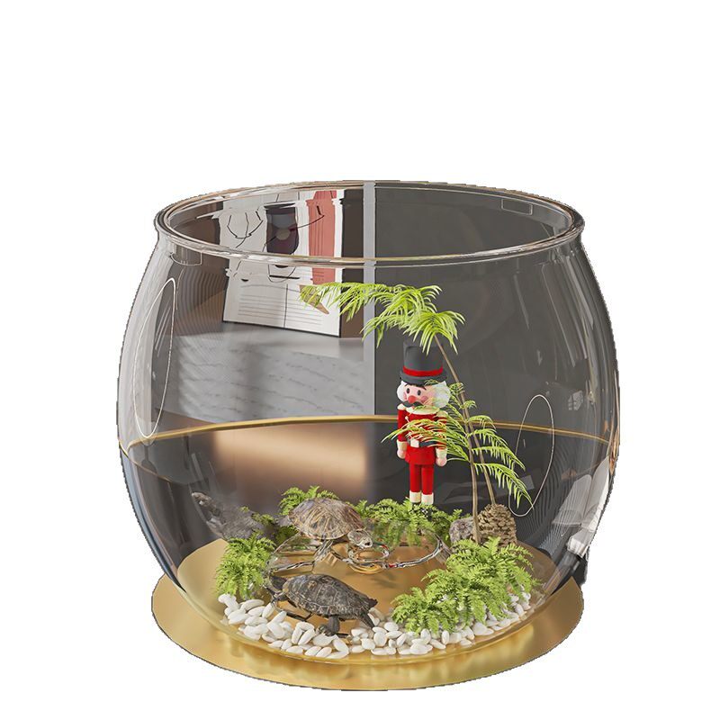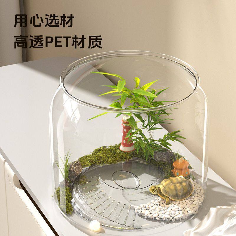 淘宝乌龟缸圆形塑料家用客厅透明生态造景金鱼绿植观赏鱼缸带晒台龟缸