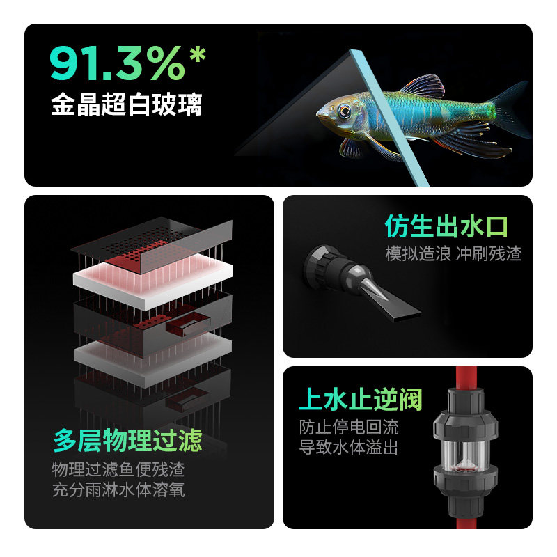 德克工业风溪流缸是一款融合现代工业美学与生态科技的家用观赏鱼缸,专为客厅、办公室等空间打造。采用免换水生态底滤系统,搭配高效生物过滤与自动补水设计,有效维持水质稳定,大幅减少日常维护。缸体以极简金属框架搭配超白玻璃,呈现粗犷而不失精致的工业风格,内置溪流造景模拟自然水流,营造静谧生态氛围。适合饲养小型热带鱼或观背青鳉,兼具装饰性与实用性,是都市生活中亲近自然的理想选择,让忙碌之余也能享受一方灵动水景。