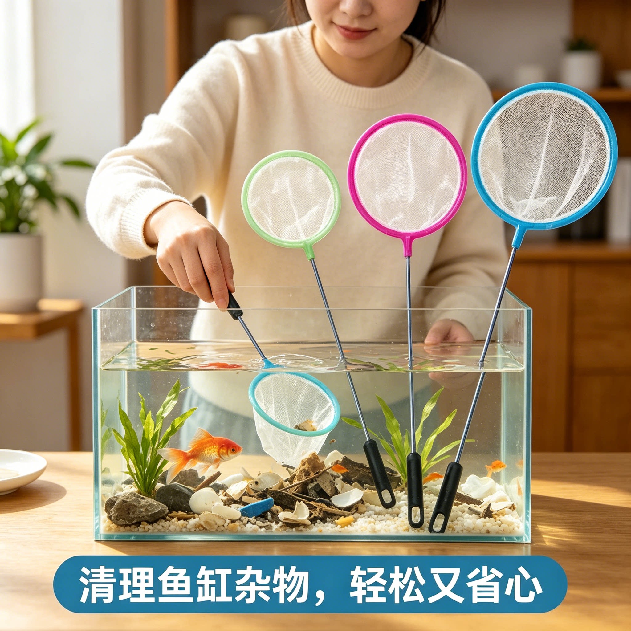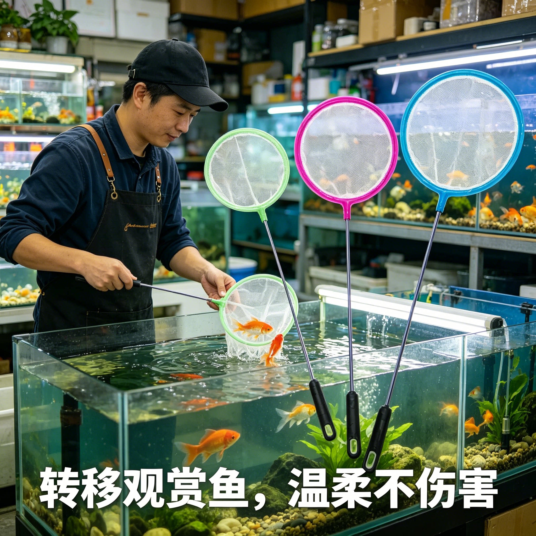 鱼缸专用捞鱼网是专为水族爱好者设计的小型捕捞工具,适用于金鱼、热带鱼等观赏鱼的日常管理与转移。采用柔软细腻的尼龙网兜,有效避免鱼体受伤,同时具备良好透水性和耐用性。手柄多由环保塑料或不锈钢制成,轻便防滑,操作灵活。网框坚固且边缘光滑,确保安全不伤鱼。尺寸多样,可满足不同鱼缸大小及使用需求。无论是换水、隔离病鱼还是清理杂物,这款捞鱼网都是水族箱维护的得力助手,是每位养鱼人必备的实用工具。