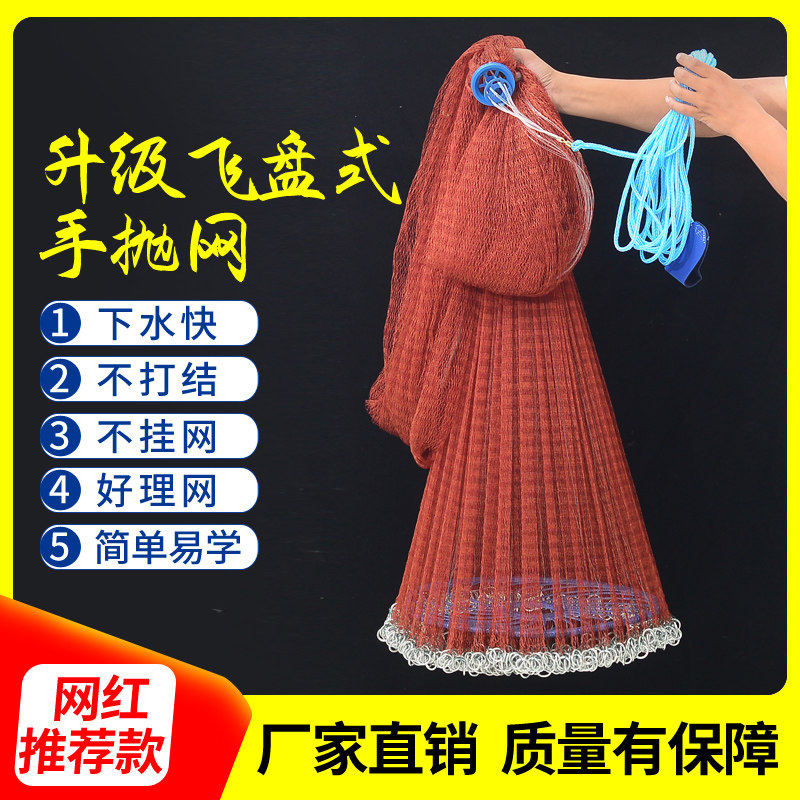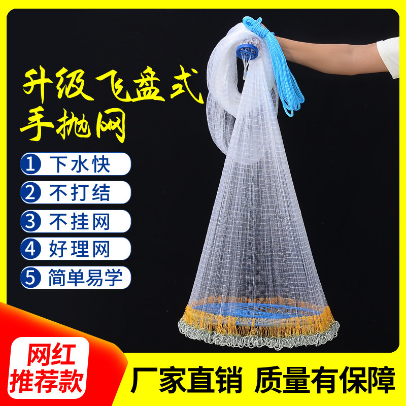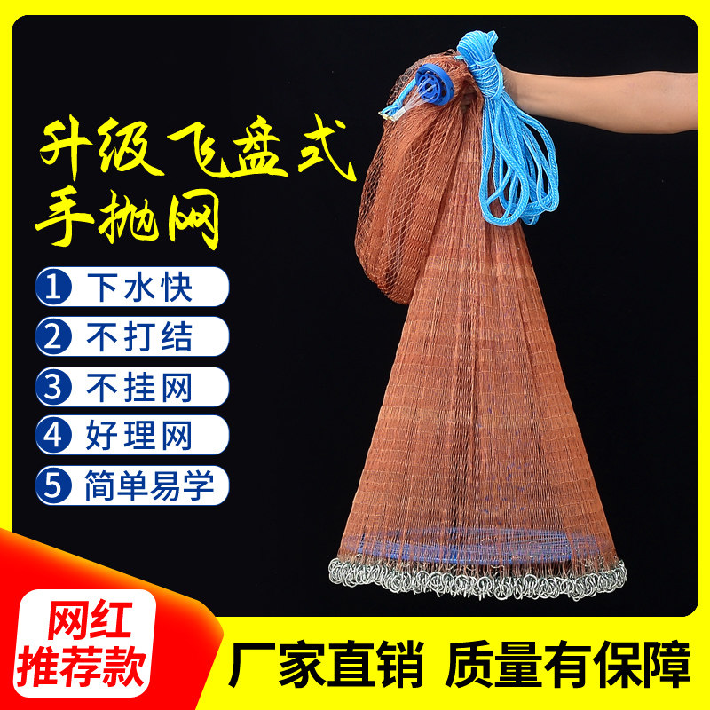 淘美式飞盘手抛网撒网捕鱼网抡网白条旋网自动打鱼渔网铝圈单丝渔网