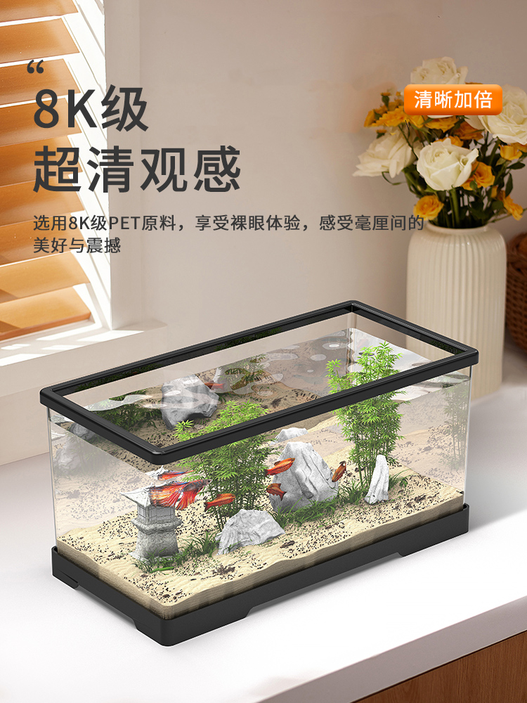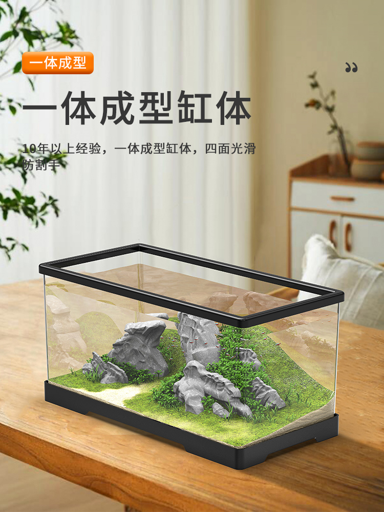 淘客厅小型玻璃金鱼缸家用免换水造景静音增氧桌面鱼缸办公室水族箱