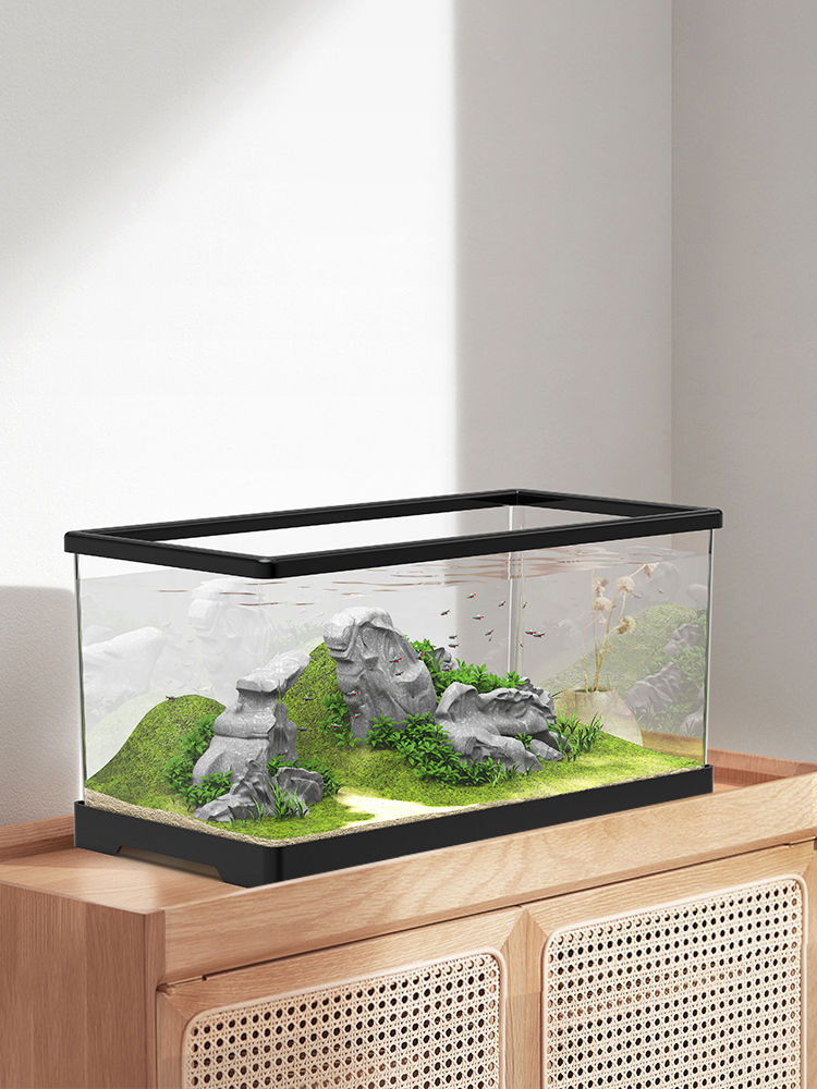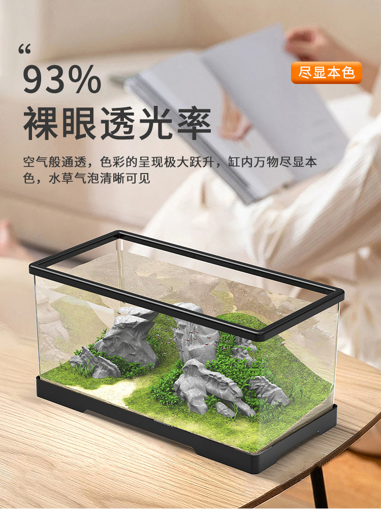 天仟湖鱼有爱家用鱼缸客厅一体式极窄溢流溪流缸超白玻璃底滤水族箱