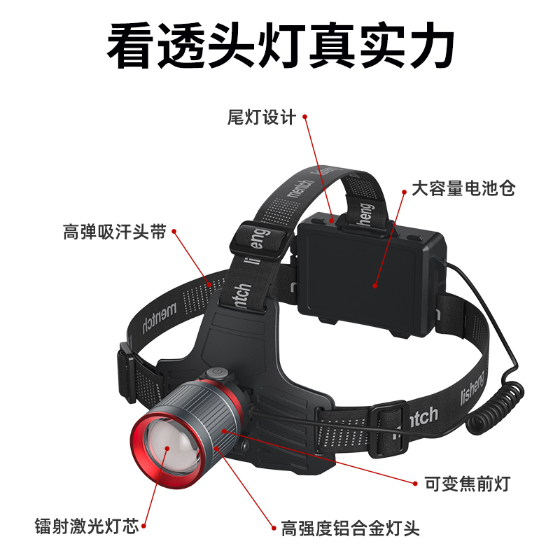 天猫立胜新款头灯户外超长续航充电锂电池手电筒强光超亮夜晚钓鱼专用
