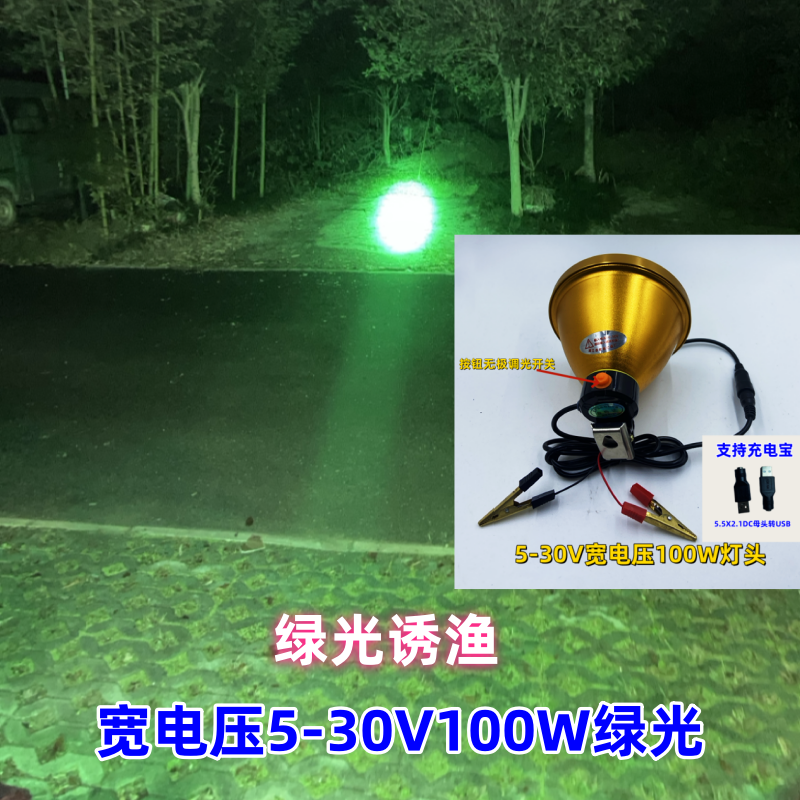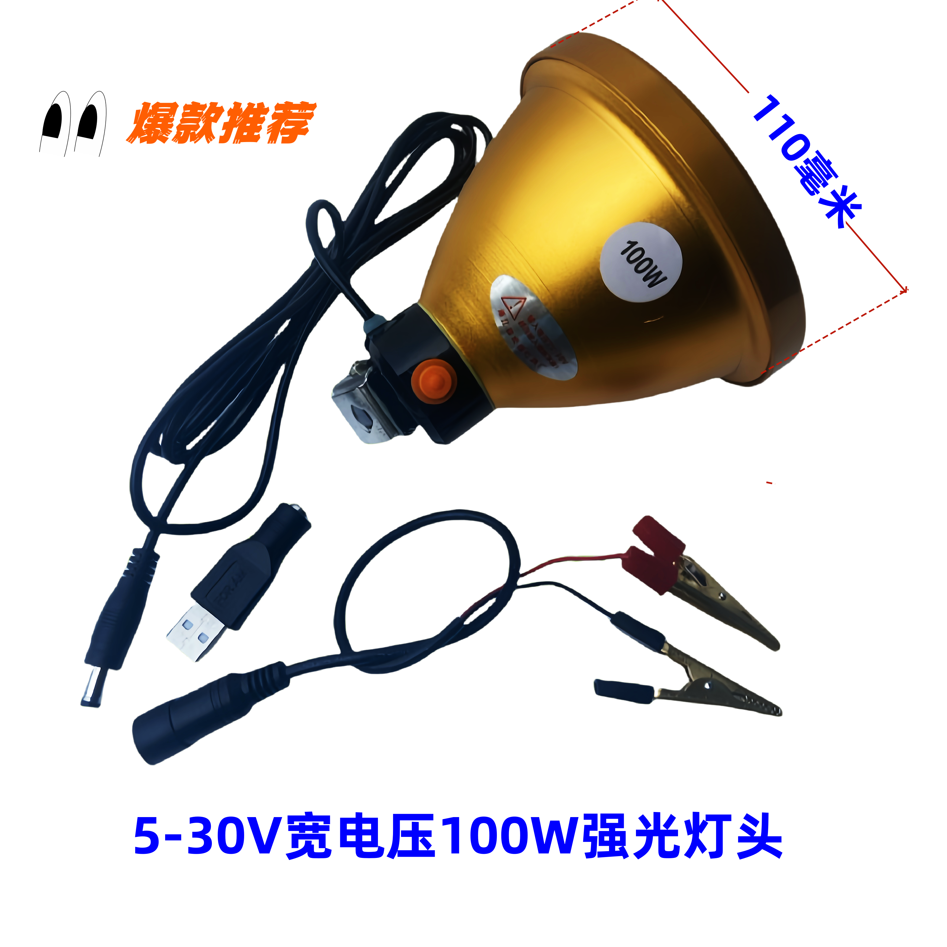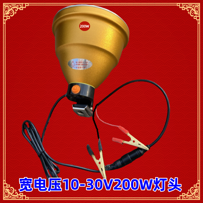 淘宝鸿顺户外5到30V宽电压100w200瓦黄光白光蓝光钓鱼灯夜钓激光灯炮