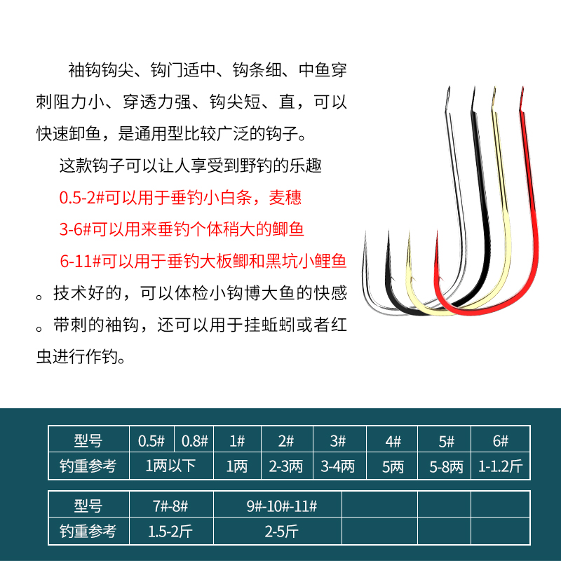 天猫江垂金袖鱼钩袖钩散装正品细条长柄鲫鱼白条神器赤袖挂红虫钓鱼钩