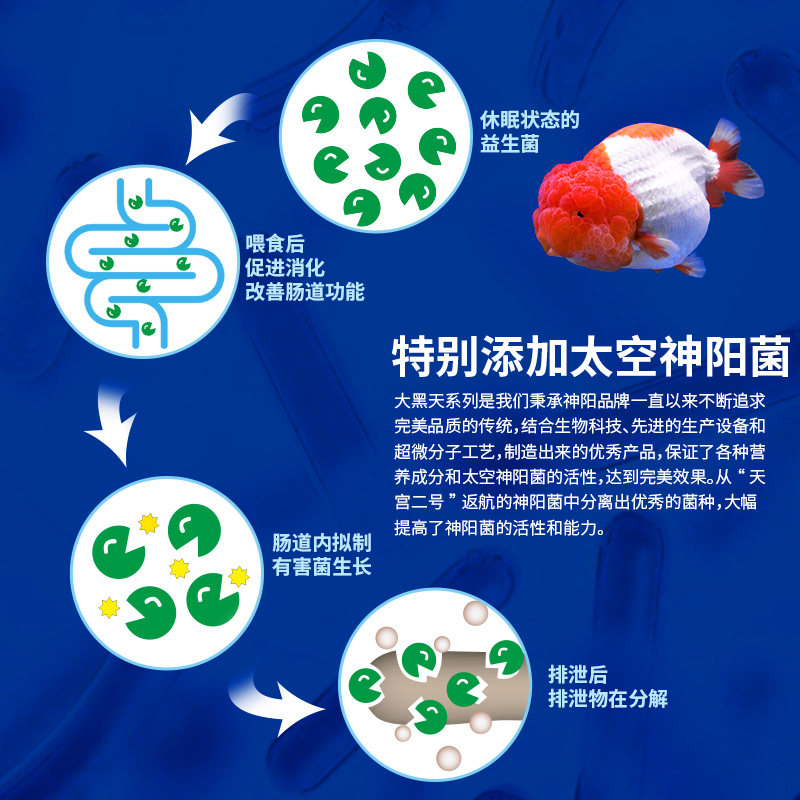 淘宝大黑天兰寿泰狮金鱼育成色扬增体胚芽发体增色下沉饲料神阳鱼食