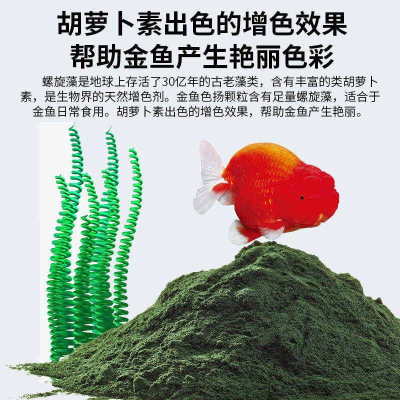 大黑天兰寿泰狮金鱼育成色扬增体胚芽发体增色下沉饲料“神阳鱼食”,专为高端金鱼培育研发。采用优质胚芽与天然增色成分,有效促进兰寿、泰狮等品种体型壮硕、头瘤饱满、鳞片紧致。独特下沉式设计,避免水面摄食导致的消化问题,提升吸收效率。富含虾青素、螺旋藻及多种维生素,显著增强体色浓郁度,尤其利于大黑天等深色系金鱼发色稳定。配方科学,低残渣、不浑水,保障水质清洁。长期使用可激发金鱼生长潜能,实现色、形、质全面提升,是专业玩家与爱好者的优选饲料。