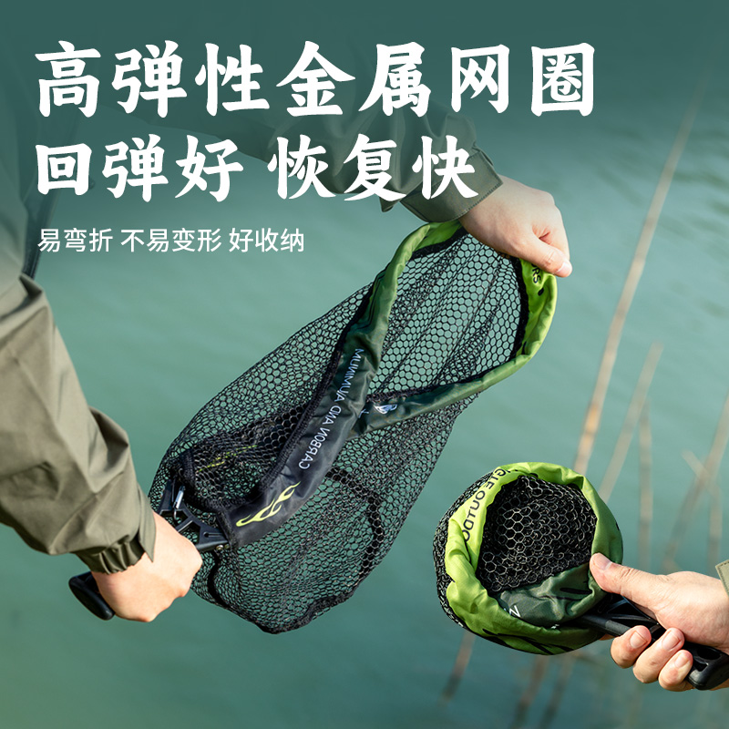 淘新款不锈钢抄网3米抄网竿捞鱼网伸缩杆网抄鱼抄网可折叠抄网头鱼