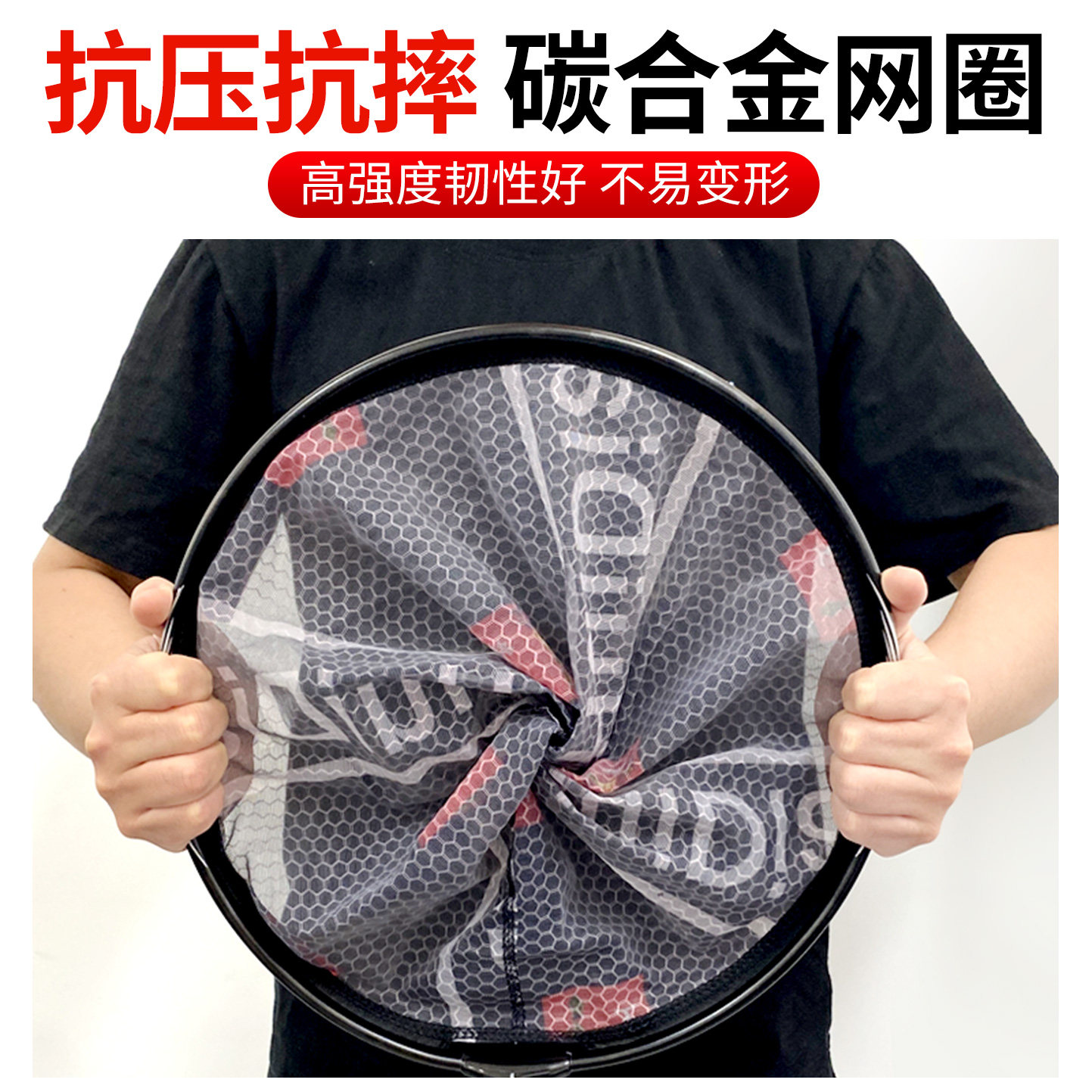 天猫竞技碳素抄网头捞鱼网不挂钩黑坑纳米超轻钛合金实心加深钓鱼网兜