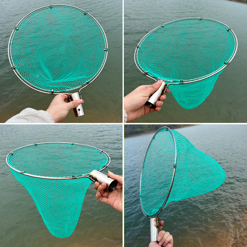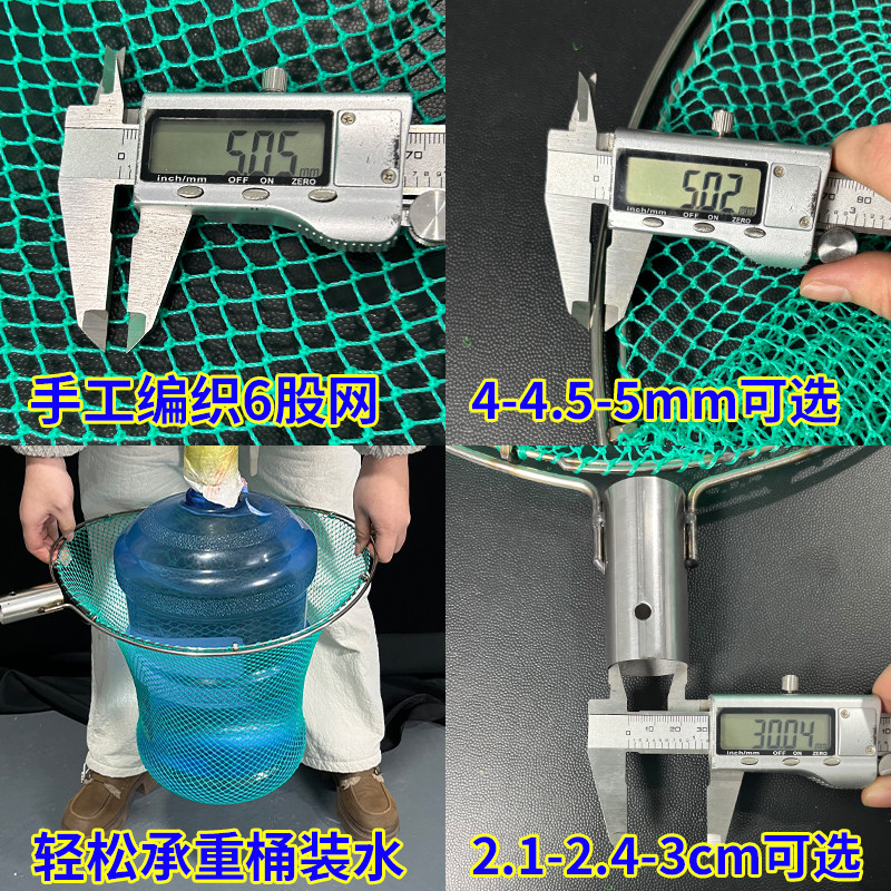 淘宝5mm细眼纯手工网兜不锈钢实心双圈抄网头防磨海鲜市场卖鱼捞鱼虾