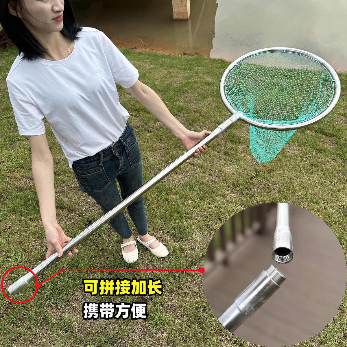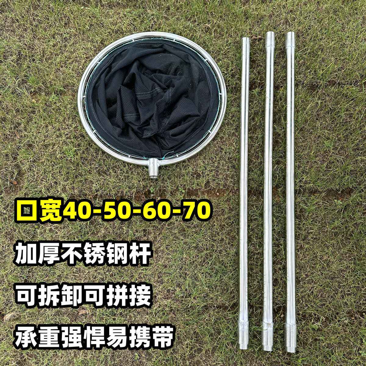 淘宝超结实便携式不锈钢抄网拼接加长捞大鱼不伤鱼捞虾捞鱼网锦鲤抄网