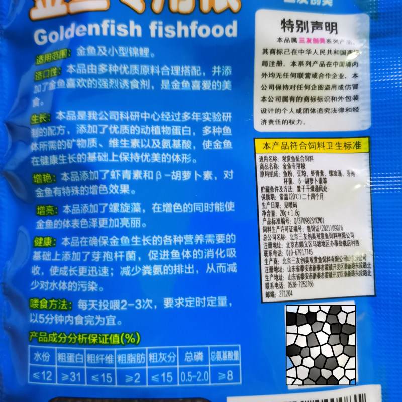 本品专为观赏小金鱼设计,采用优质原料科学配比,富含蛋白质、维生素及矿物质,促进鱼儿健康生长、体色鲜艳。小颗粒上浮型设计,便于金鱼摄食,减少残饵沉底,有效避免水质浑浊,保持缸体清洁。袋装密封性好,防潮保鲜,开袋即用,方便储存。新品上市,颗粒细腻易消化,适口性强,适合各阶段金鱼食用。无论是新手还是资深鱼友,都能轻松喂养,让爱鱼活力充沛、色彩亮丽。坚持使用,助您打造清澈透亮、生机盎然的水族世界。