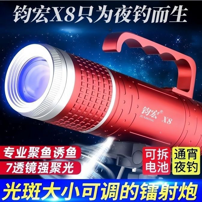 淘宝(可调光圈大小)顶点X8激光炮夜钓灯钓鱼灯诱鱼灯蓝光灯野钓灯