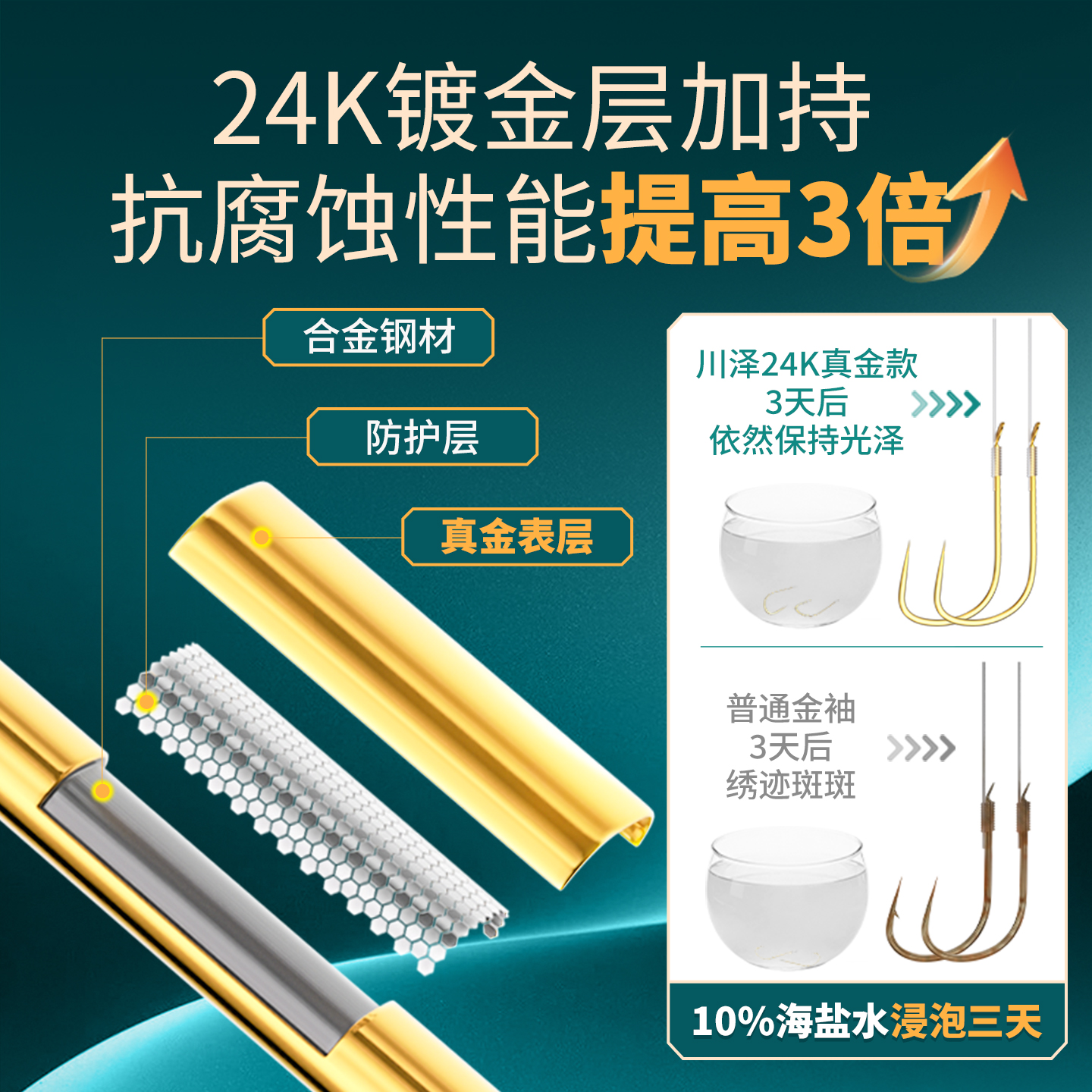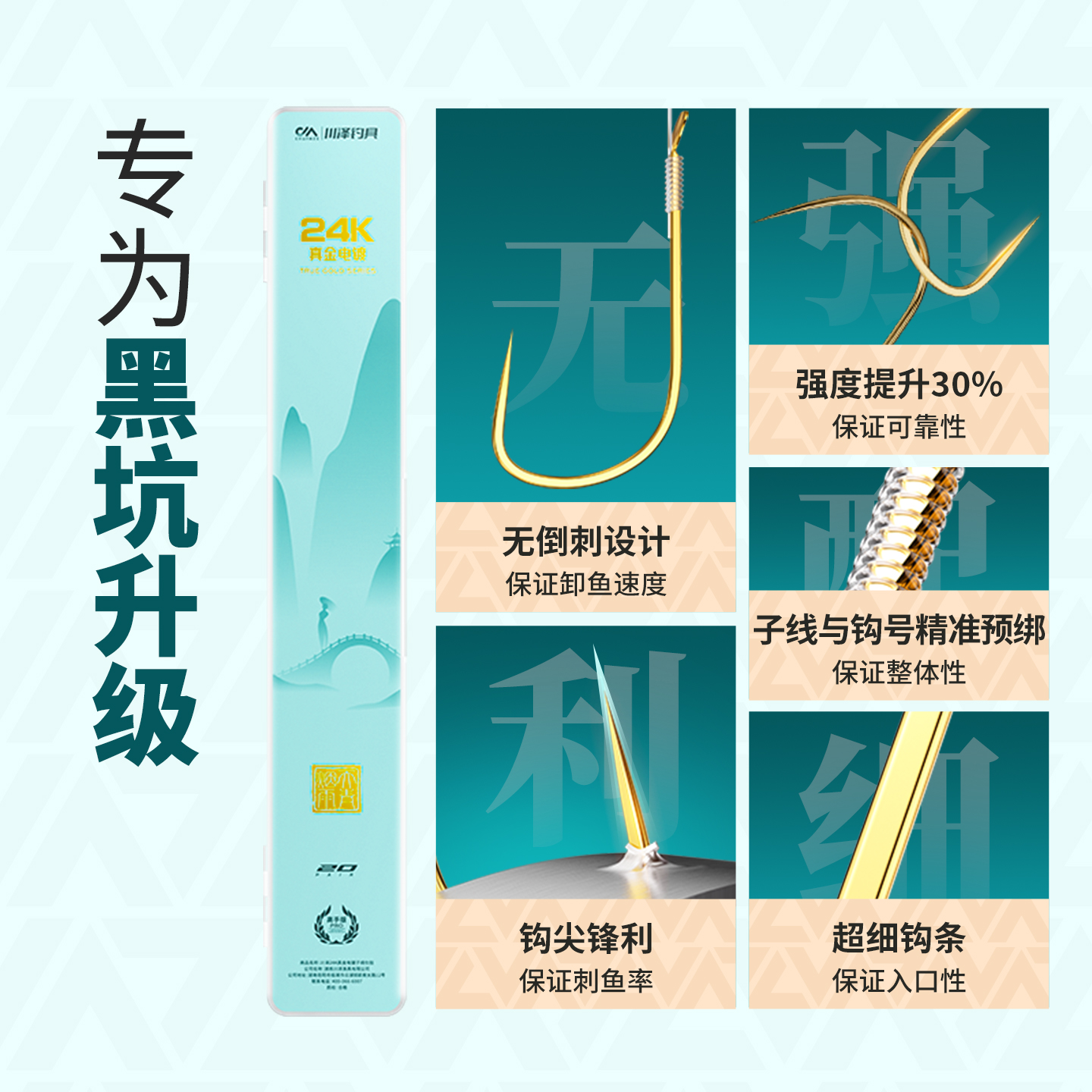 天猫川泽天青烟雨黑坑竞技袖24k金袖子线双钩成品抗腐蚀钓鱼钩抗腐蚀