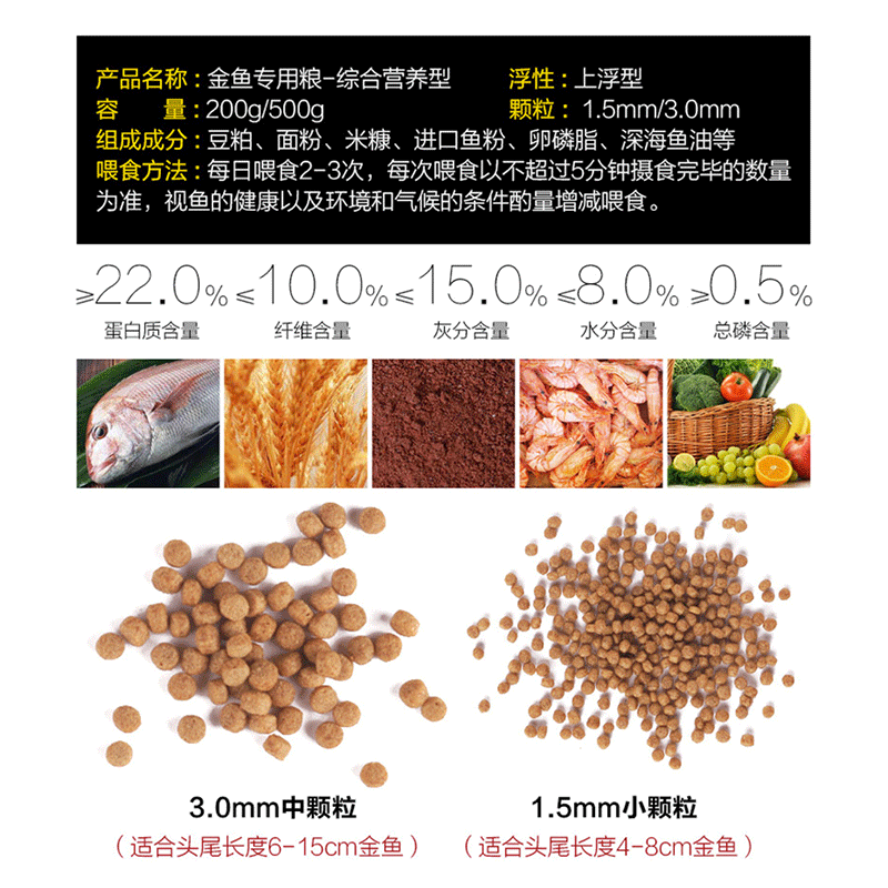天猫森森金鱼饲料鱼食小颗粒兰寿泰狮专用鱼粮上浮下沉锦鲤增体增艳