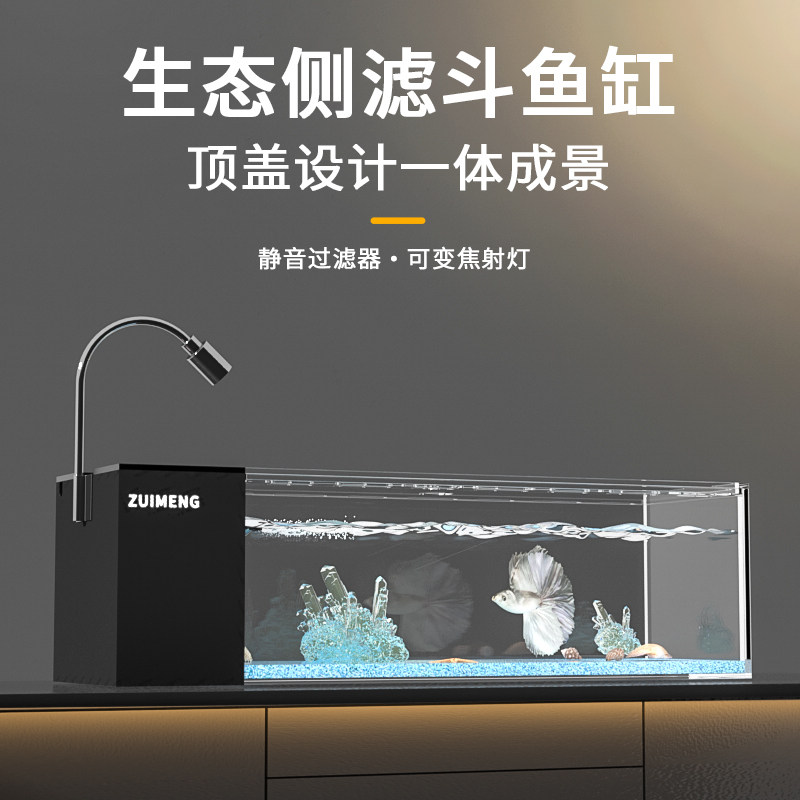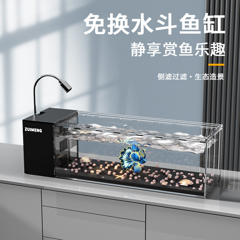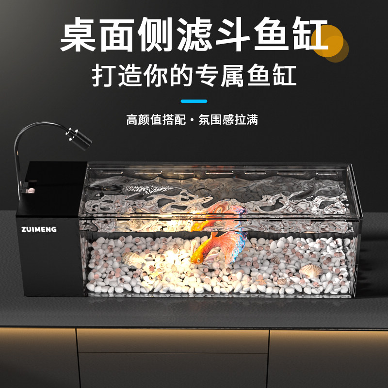 淘宝透明亚克力桌面鱼缸侧滤斗鱼缸新手轻松养鱼便携生态造景溪流鱼缸
