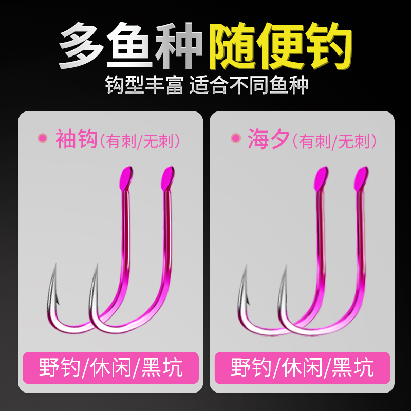 淘海夕鱼钩 进口有倒刺鱼钩特价正品钓鱼钩 伐钓钩子渔钩1-10号渔具