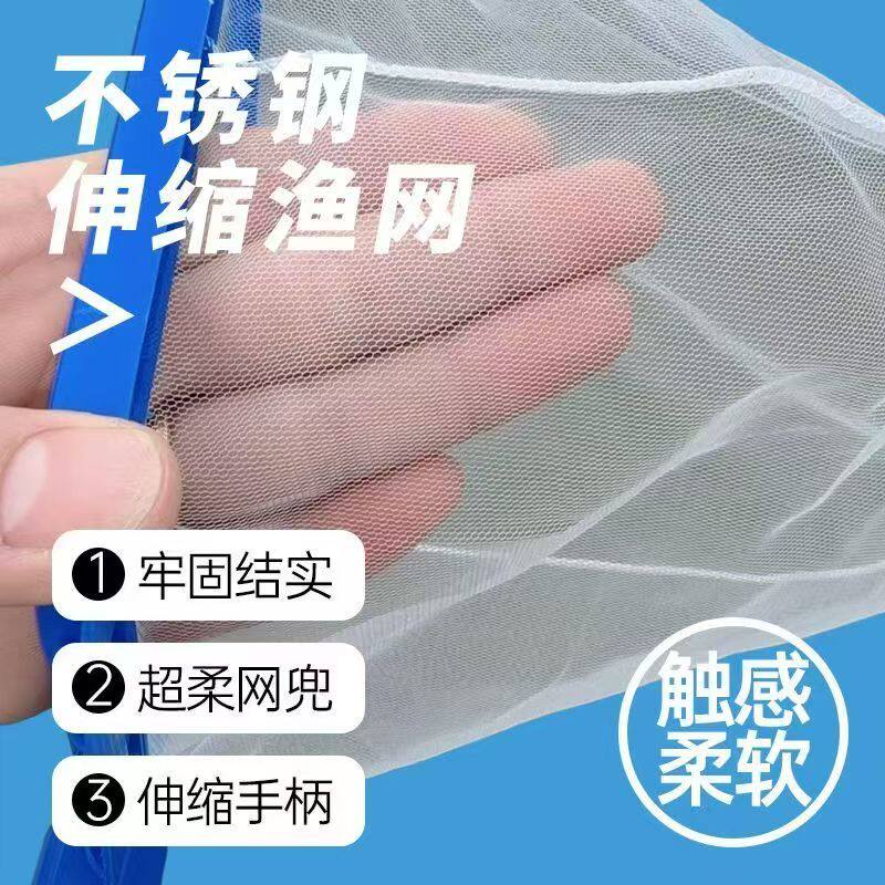 淘宝家用伸缩不锈钢抄网超密鱼网手抄鱼缸金鱼抄网网兜鱼捞方形渔捞