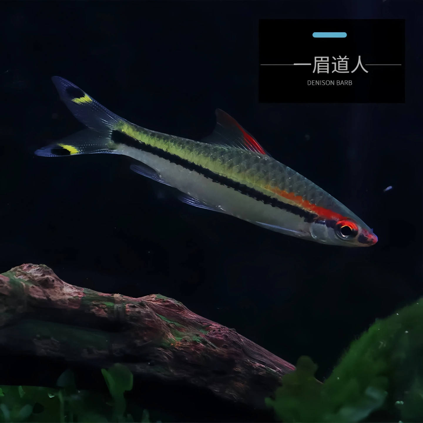 一眉道人鱼(学名:Puntius denisonii),又称红眉道人,是一种原产于印度西高止山脉的淡水小型热带观赏鱼。其体侧具鲜明的红色纵纹,从吻端延伸至尾柄,搭配黑色线条,宛如一道红眉,极具观赏性。该鱼性情温和,喜群游,适合6条以上成群饲养,能显著提升活跃度与美感。适应力强,耐养度高,适合草缸、灯科鱼混养环境,对水质要求适中,适宜水温24–28℃。作为灯科鱼中的明星品种,一眉道人不仅色彩艳丽、游姿优雅,且抗病力强,是新手与资深鱼友的理想选择,为水草造景缸增添灵动生机。