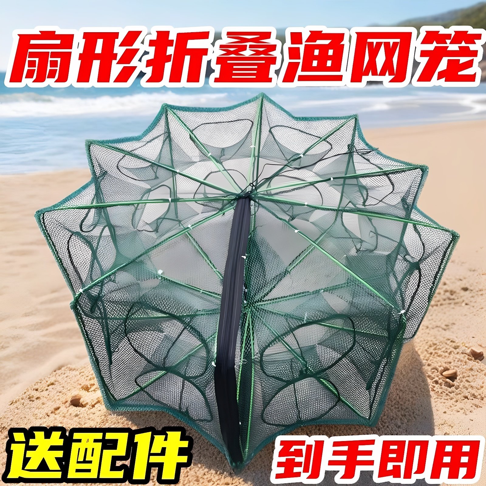 加厚网布抗撕裂,经久耐用;304不锈钢弹簧框架快速开合,操作省时省力。无论是休闲垂钓还是家庭捕捞,都能轻松应对。折叠后仅拳头大小,不占空间,是户外捕鱼、赶海抓虾的理想工具。一笼多用,助您轻松享受丰收乐趣!