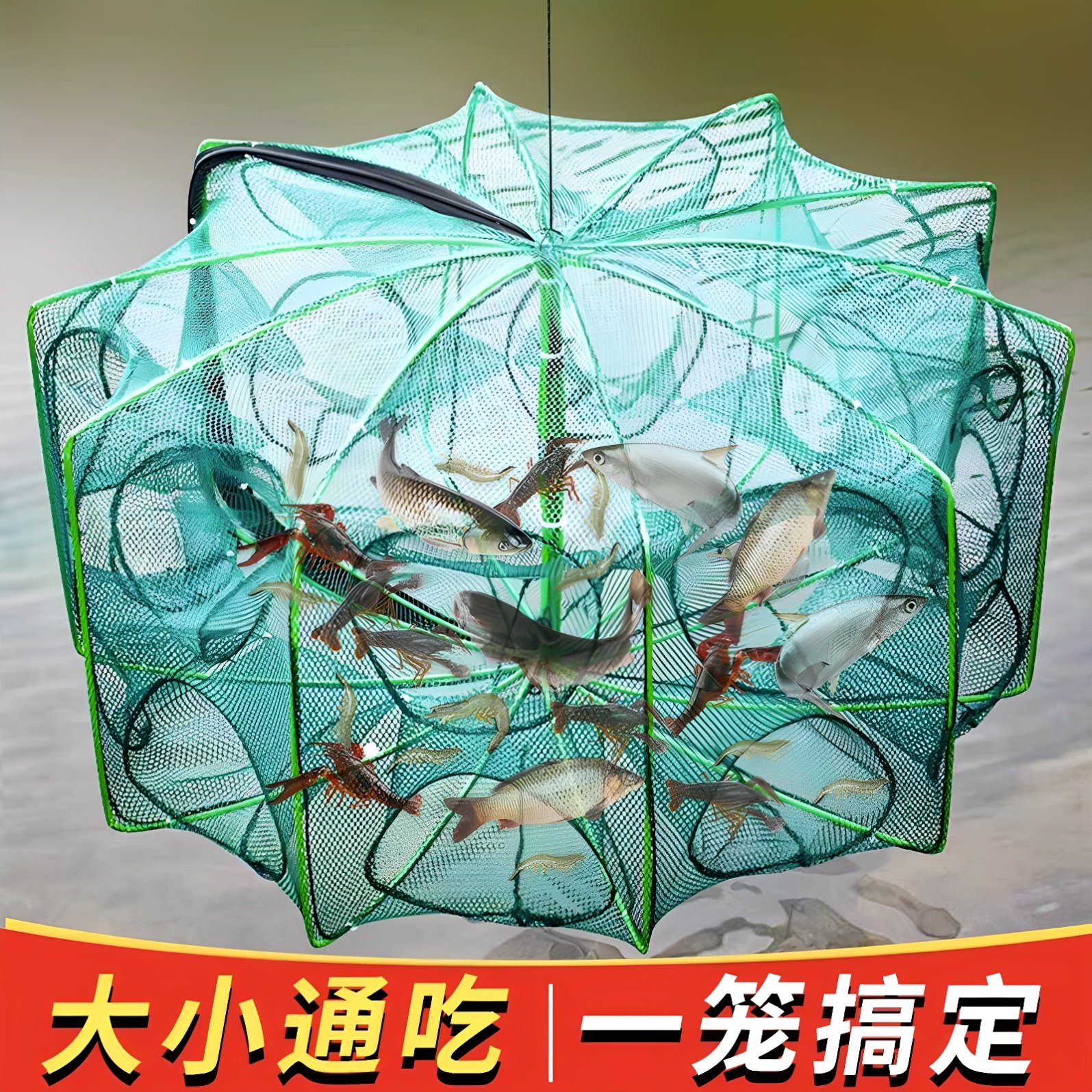 这款八角鱼笼采用高密度加粗钢圈与耐磨尼龙网布制成,兼具柔韧性与抗压性,可折叠收纳,轻便易携带。独特的八面立体设计,搭配双入口倒须结构,有效防止泥鳅、黄鳝、鱼虾逃脱,提升捕获率。网眼密度适中,兼顾小鱼筛选与高效捕捞,适合池塘、溪流、稻田等多种水域。