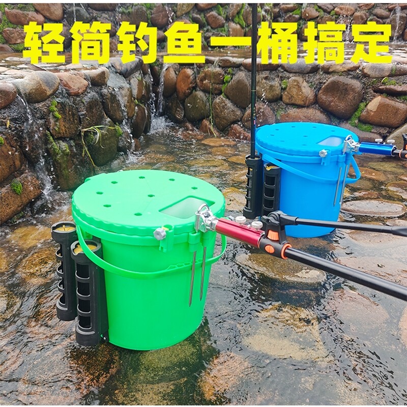淘宝黑坑寻塘桶路亚活鱼桶坐人钓桶钓鱼箱插竿器一桶搞定手提钓箱竿筒