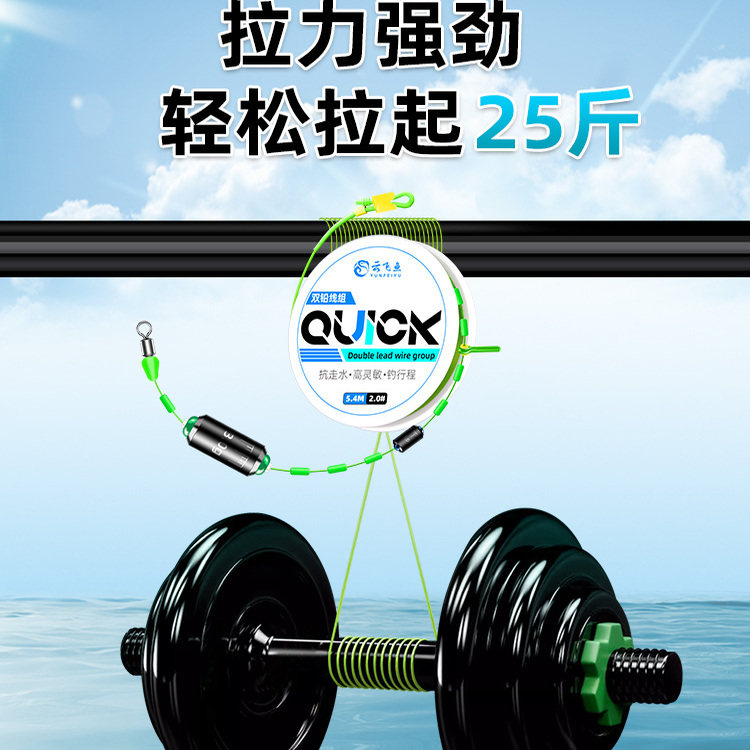 双铅主线组成品大跑铅滑铅双铅钓法专用钓鱼绑好套装,采用高韧性进口鱼线手工精绑而成,专为应对复杂水情与强流水环境设计。该线组配置上下双铅坠,主铅固定,副铅可滑动,实现大跑铅与滑铅双重功能,增强钓组稳定性与灵敏度。搭配优质八字环与太空豆,调节灵活,抗磨损性强。成品线组省去繁琐绑制步骤,即装即用,适合远投、深水及走水水域作钓。适用于鲫鱼、鲤鱼、草鱼等多种鱼种,是休闲与竞技钓友的实用之选,提升作钓效率与成功率。
