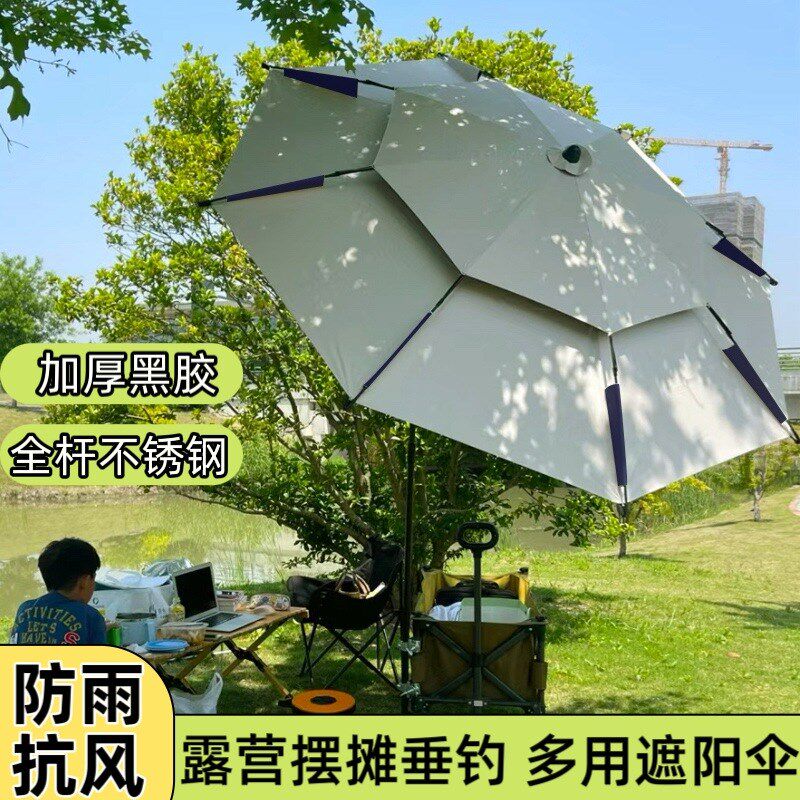 淘探险者钓鱼伞露营车户外遮阳摆摊推庭院太阳伞2024新款天幕二合一