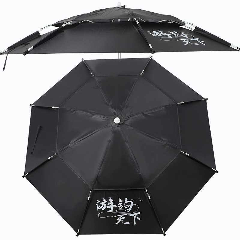 淘新型钓鱼伞帽头戴式防晒透气遮阳伞斗笠伞双层大号戴头上户外帽伞