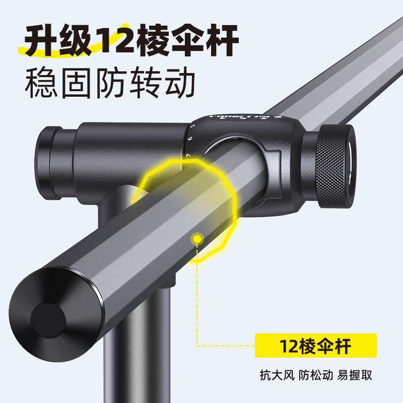 渔之源2024年新款“去野系列”多向大钓伞,专为户外垂钓爱好者打造。采用高强度铝合金骨架,轻盈稳固,抗风性能卓越。伞面选用高密度防紫外线涂层布,UPF50+防晒,有效阻隔阳光直射,晴雨两用。独特多向调节设计,支持360°旋转及多角度倾斜,轻松应对不同风向与日照方向。加粗伞杆搭配可拆卸拐杖底座,既可稳固支撑,亦可作为徒步手杖使用,一伞多用。伞面直径达2.4米,遮阳面积大,容纳多人及钓具。便携收纳,附赠防水背包,是野钓、露营、户外休闲的理想伴侣。