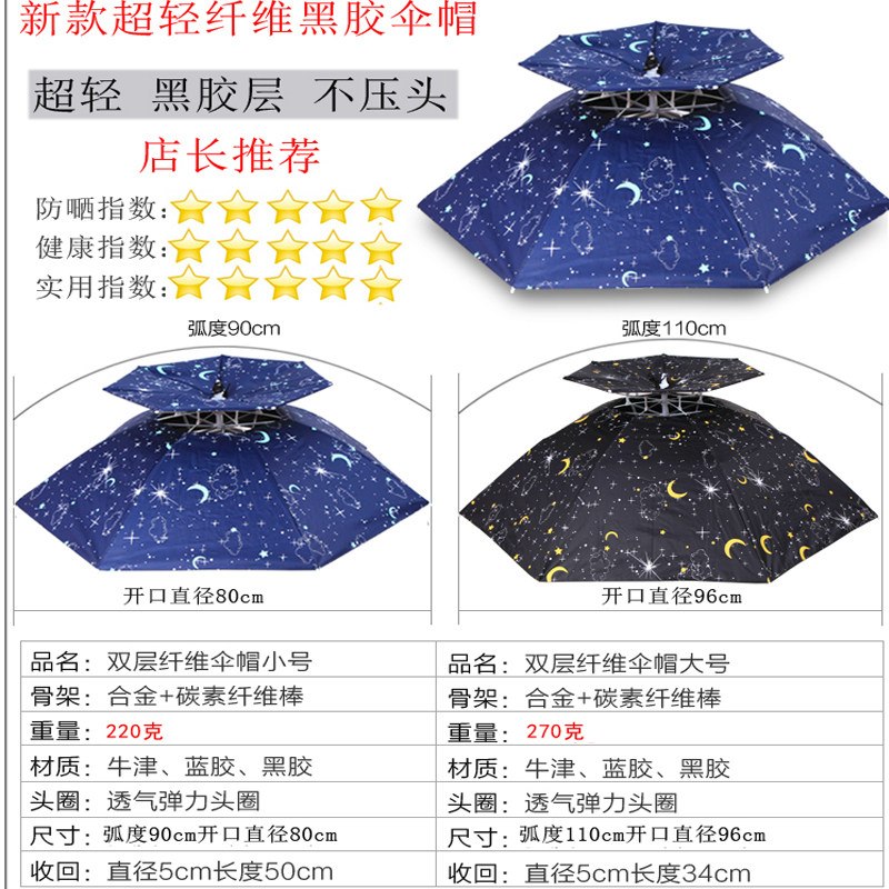 淘宝极速户外头c伞帽头戴伞钓鱼采茶干活大号帽子伞黑胶双层遮阳防嗮