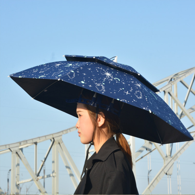 天渔之源头戴式遮阳伞伞帽头顶雨伞帽子伞钓鱼专用头伞钓鱼头伞折叠