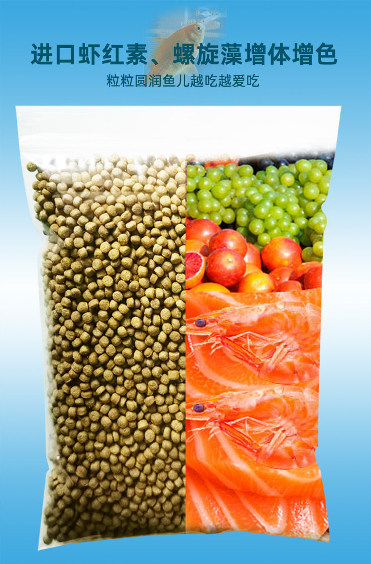 天海豚锦鲤鱼饲料焕色增肥健体鱼粮金鱼通用大颗粒高蛋白螺旋藻鱼食