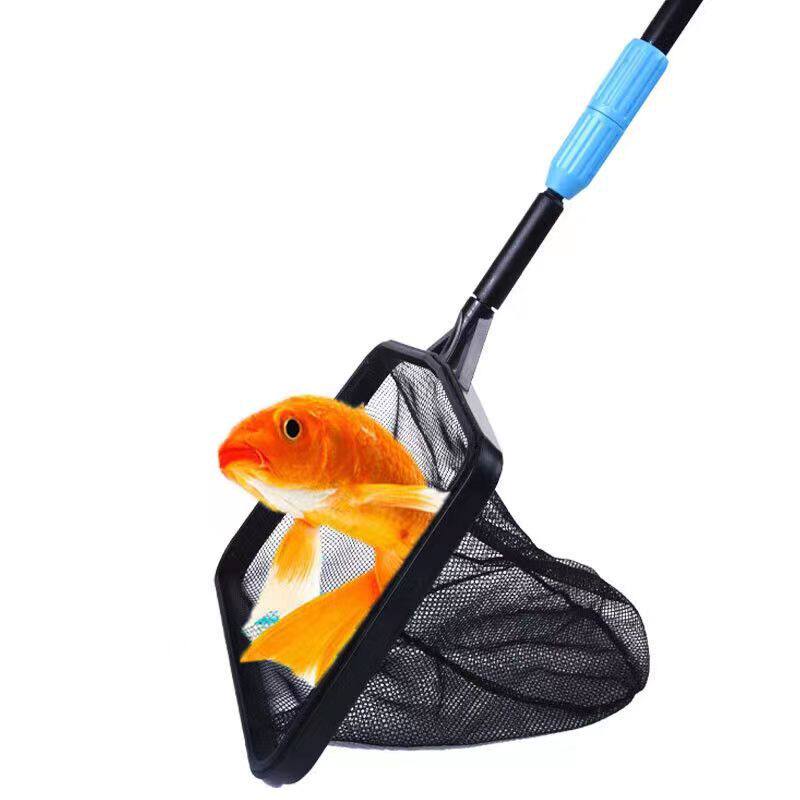 淘鱼捞网兜超密网小号大号不锈钢伸缩杆手工3d方形圆形鱼缸斗鱼鱼捞