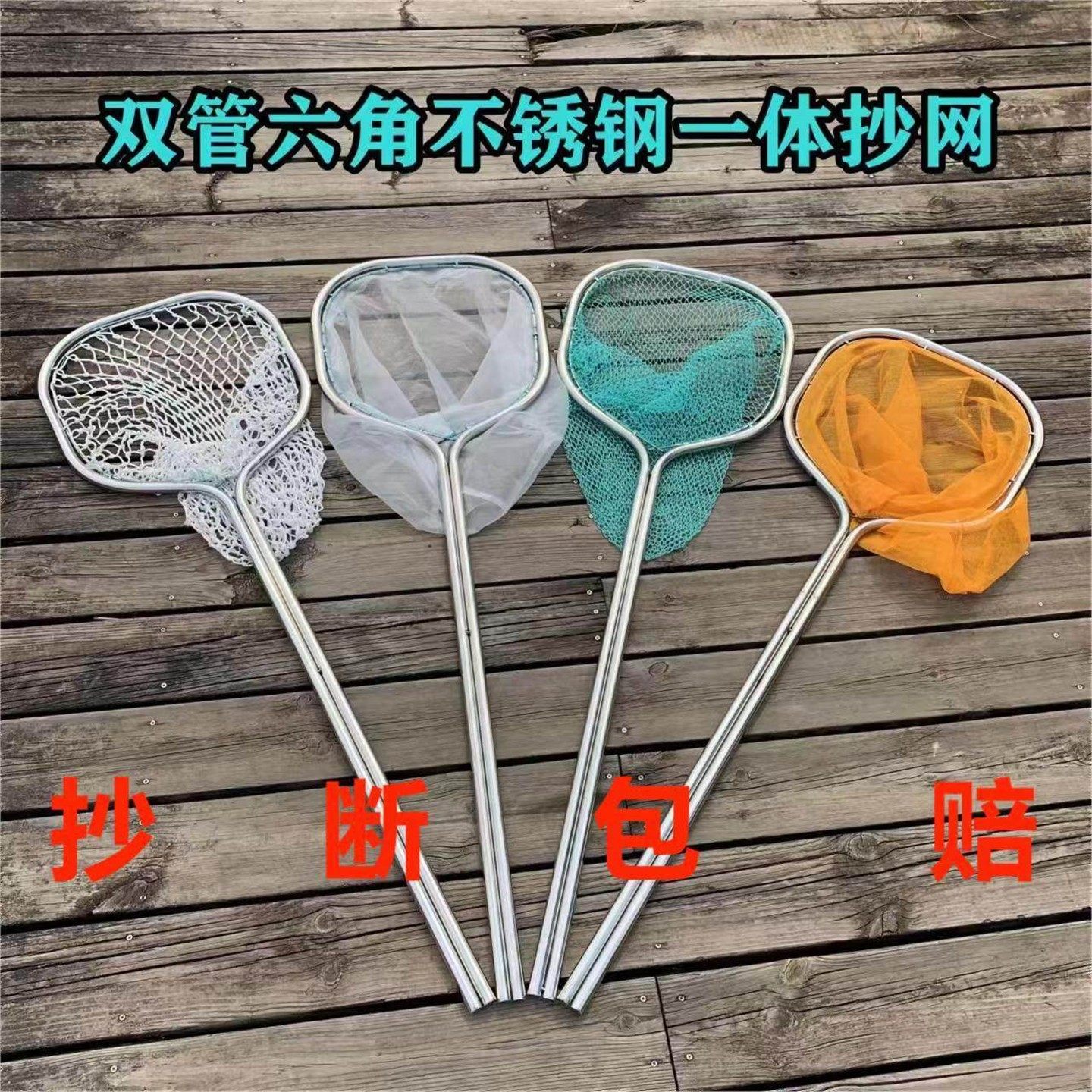 淘宝双管不锈钢一体成型捞鱼抄网超硬加厚鱼捞赶海钓鱼打捞网抄断包赔