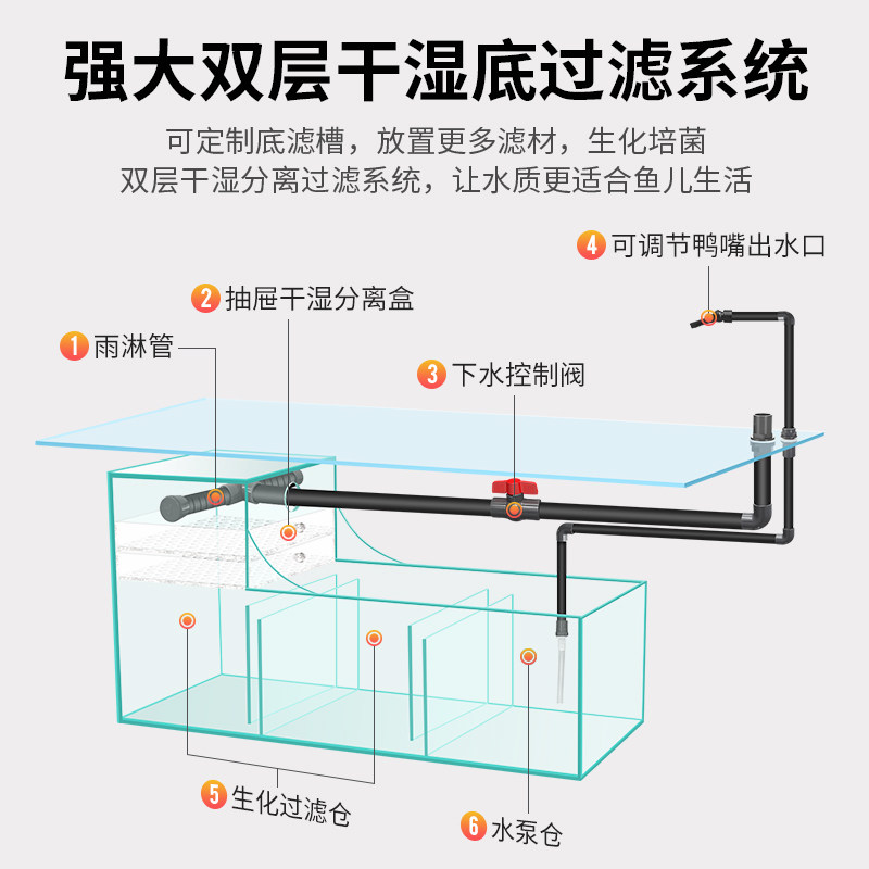 淘宝直角溢流套餐缸金晶超白玻璃底滤鱼缸过滤槽沉淀仓定制定做