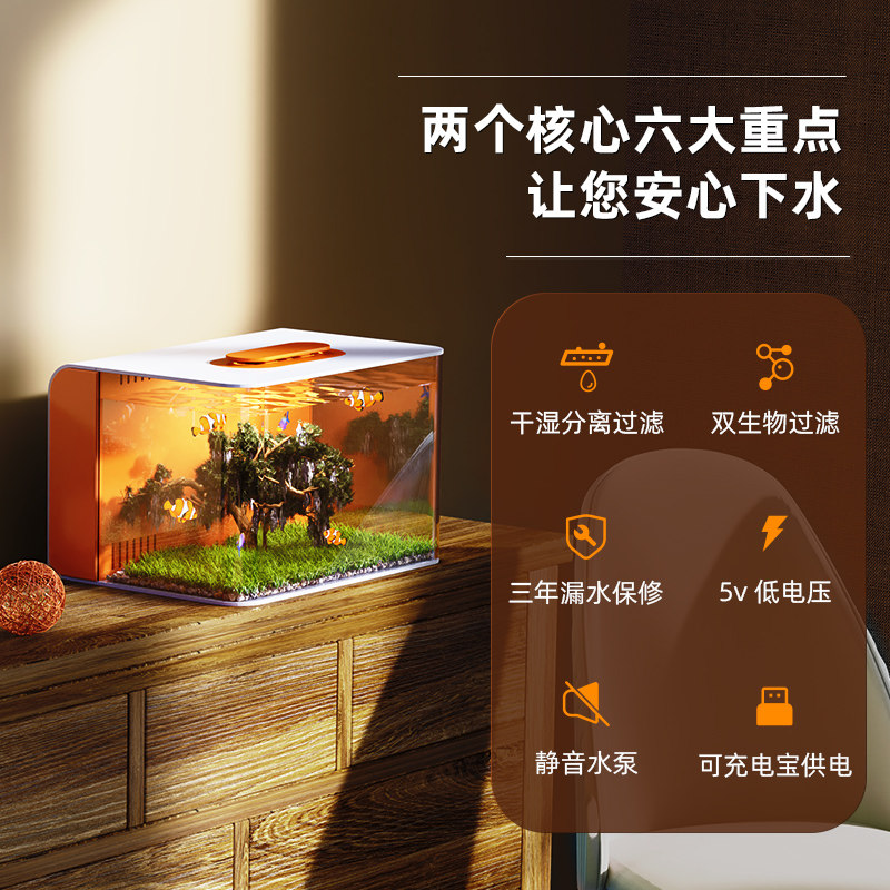 天森森鱼缸客厅2025新款免换水自循环生态智能超白玻璃小型桌面鱼缸