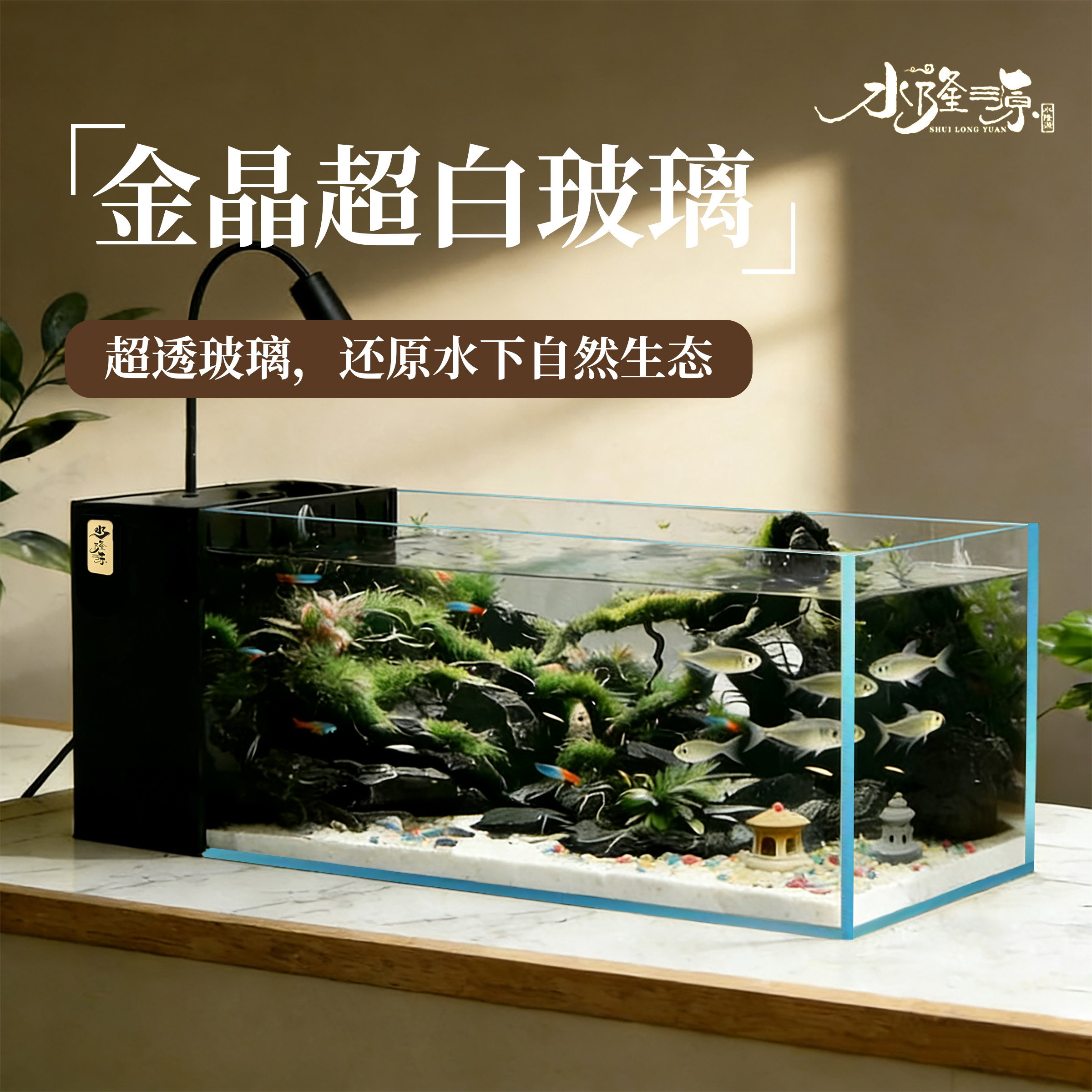 天2025新款超白玻璃鱼缸小型客厅生态造景过滤制氧一体机侧滤溪流缸