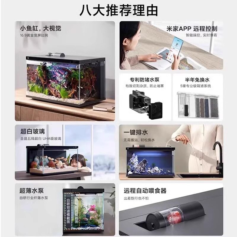 【下拉详情页领大额补贴】小米米家智能鱼缸,专为现代家居打造的客厅小型造景桌面鱼缸。采用简约美学设计,搭配高清超白玻璃,透光清晰,观赏体验极佳。内置智能循环过滤系统,自动净水、增氧,维护更省心。支持米家APP远程操控,实时监测水质、调节灯光,还可自定义照明模式,营造梦幻氛围。小巧机身适合书桌、茶几或电视柜,既是宠物栖息地,也是家居艺术点缀。现在下单,下拉详情页即可领取大额补贴,限时优惠,性价比超高。让科技与自然融合,轻松开启智能养鱼新体验,为生活增添一抹灵动生机。