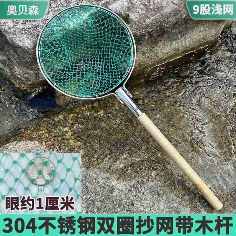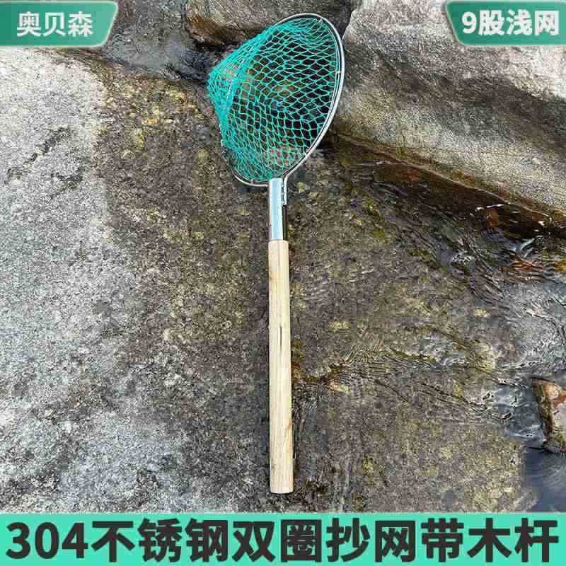 淘宝新疆包邮浅网双圈304不锈钢捞鱼网市场卖鱼捞海鲜手抄网赶海三角