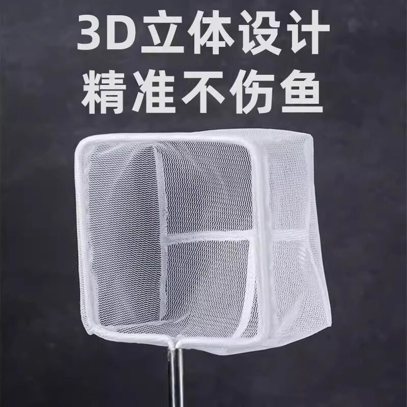 新品3D立体鱼捞水族o箱抄网兜观赏鱼不锈钢小鱼网捞可伸缩圆形方