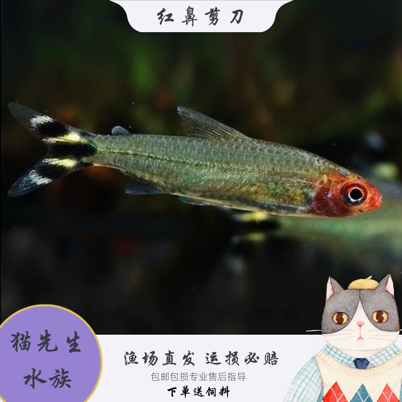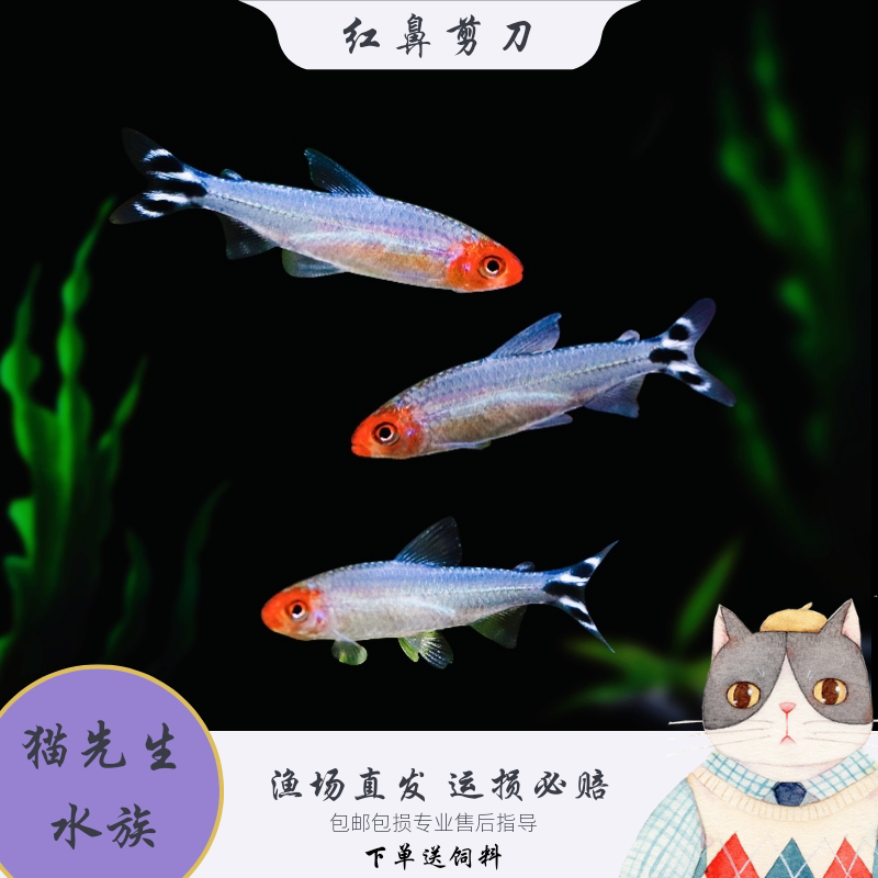 淘宝红鼻剪刀小型热带鱼观赏鱼草缸灯鱼活体淡水混养群游鱼红鼻子灯鱼