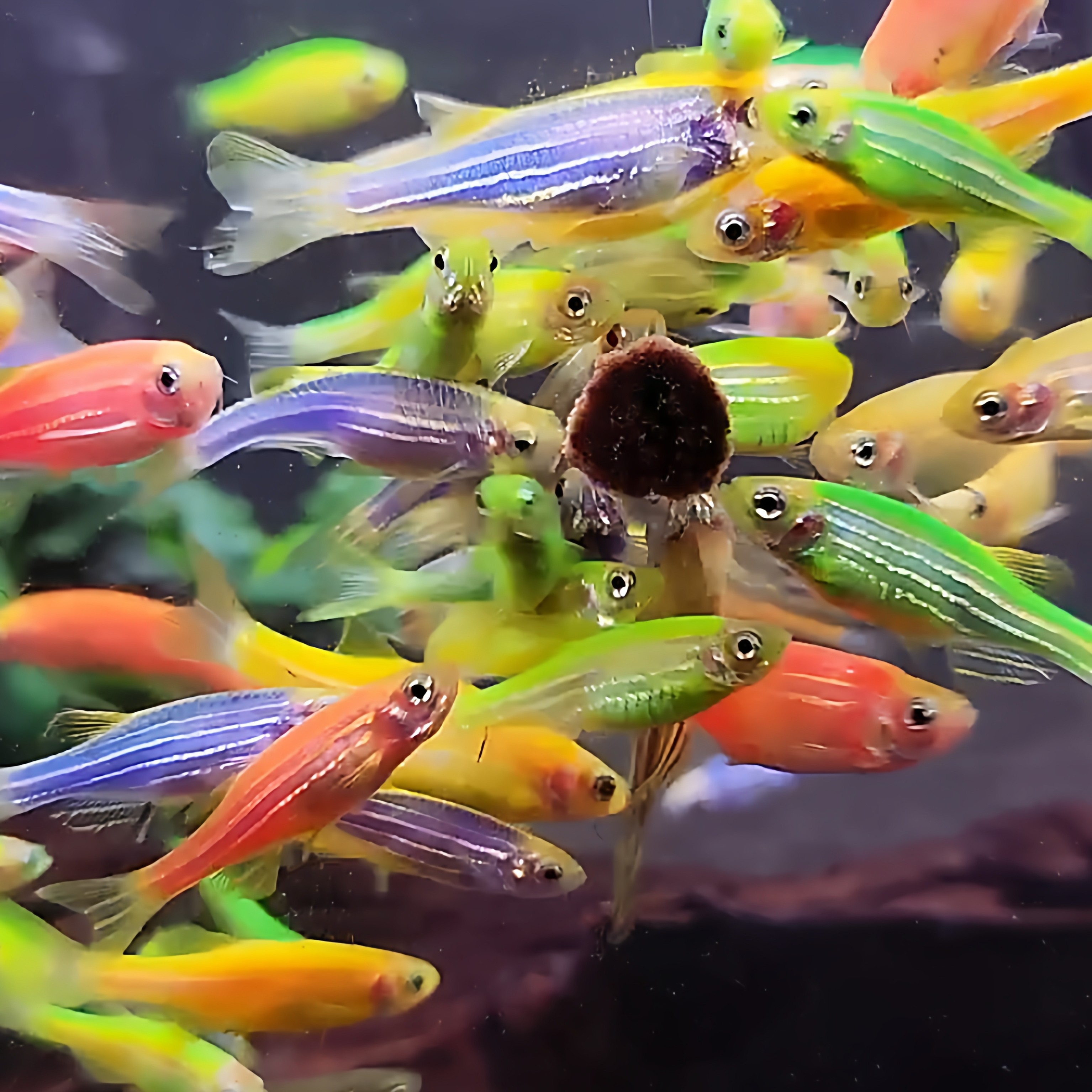荧光斑马鱼“青苹果绿”是一种色彩鲜艳、极具观赏性的热带小型观赏鱼,因其体表呈现清新的青苹果绿色荧光而得名。该品种拥有蝶翼般的宽大背鳍和优雅长尾,游动时轻盈飘逸,极具美感。作为改良型斑马鱼,它适应力强,对水质要求不高,既可在冷水也可在热带环境中生存,非常适合新手饲养。性情温和,适合群养于小型水族箱中,搭配水草造景更显灵动。喂食简单,杂食性,日常管理轻松。因其亮眼的荧光色彩与独特外形,成为水族爱好者追捧的热门品种,是打造活力水族生态的理想选择。
