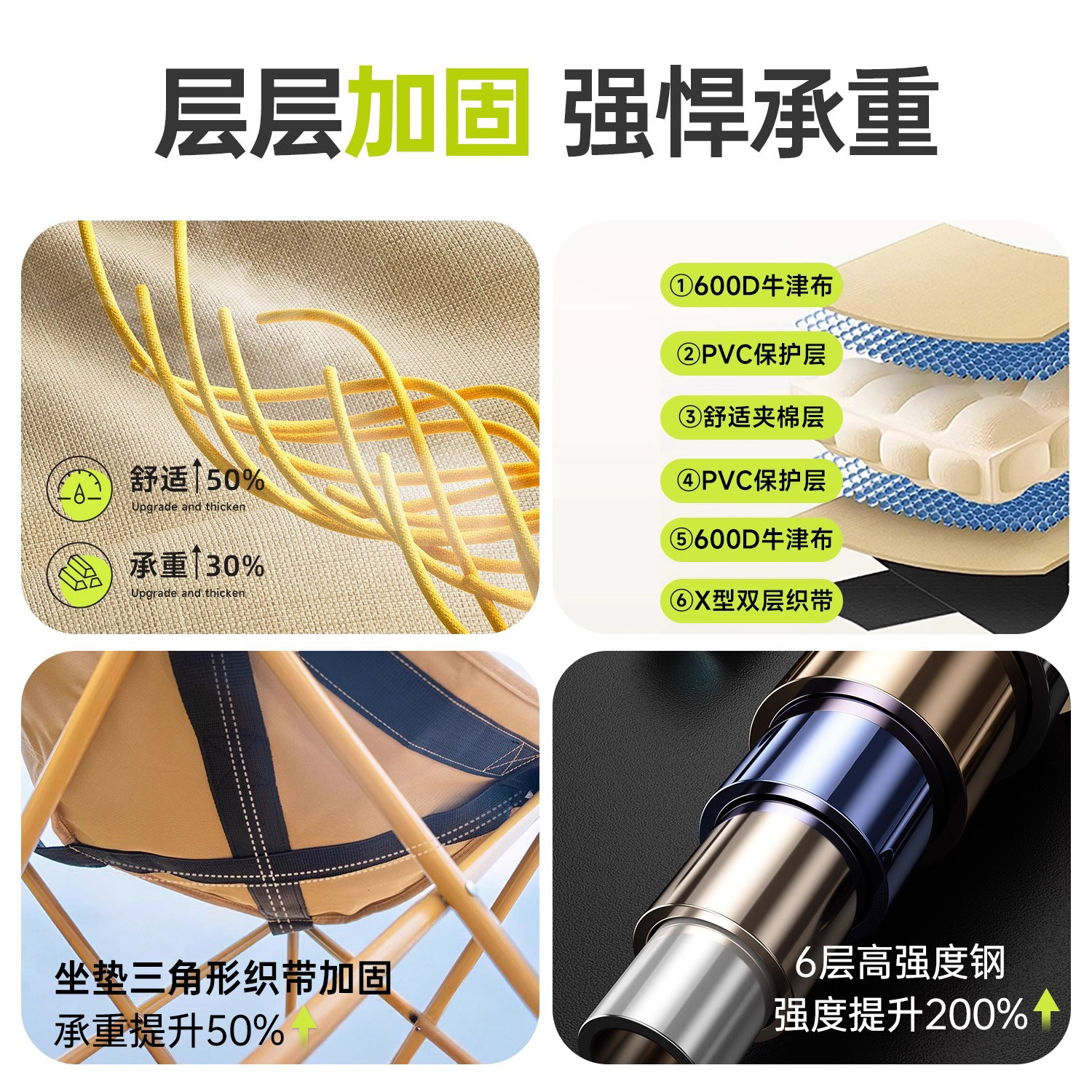 德国户外折叠椅是一款集轻便、舒适与多功能于一体的便携式座椅,适合露营、沙滩、钓鱼、庭院休闲及学生户外使用。采用高强度铝合金框架与耐磨牛津布面料,承重强、稳定性高,加高设计提升坐姿舒适度,部分款式可调节靠背角度,实现躺椅功能。折叠后小巧轻便,配有便携背带,轻松携带。月亮椅造型符合人体工学,久坐不累,适用于多种场景。无论是户外探险、家庭野餐,还是阳台放松,这款德国工艺打造的折叠椅都能为您提供可靠的支撑与惬意的休憩体验,是现代户外生活的理想之选。