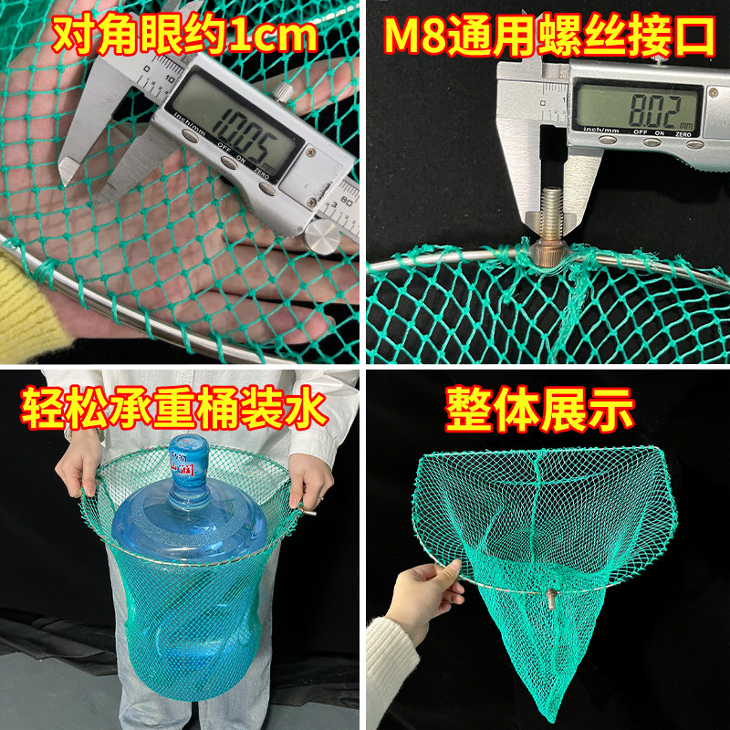 一体成型不锈钢抄网捞鱼网渔具鱼网超硬鱼捞河虾赶海网抄捞子网兜