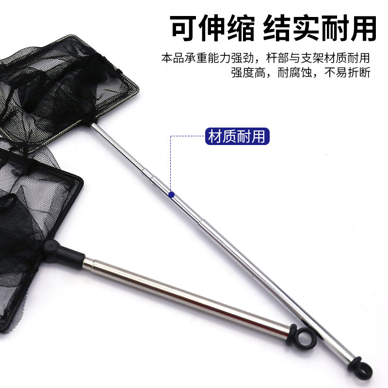 淘鱼捞不锈钢鱼网渔网方形鱼缸网兜金鱼伸缩观赏鱼手抄水族箱渔捞