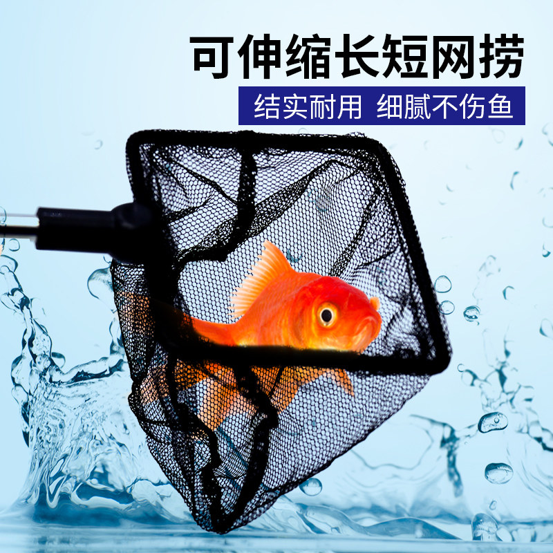 淘宝新品可伸缩长短鱼捞鱼缸虾缸龟z缸水族箱捞鱼网方形手抄小金鱼鱼